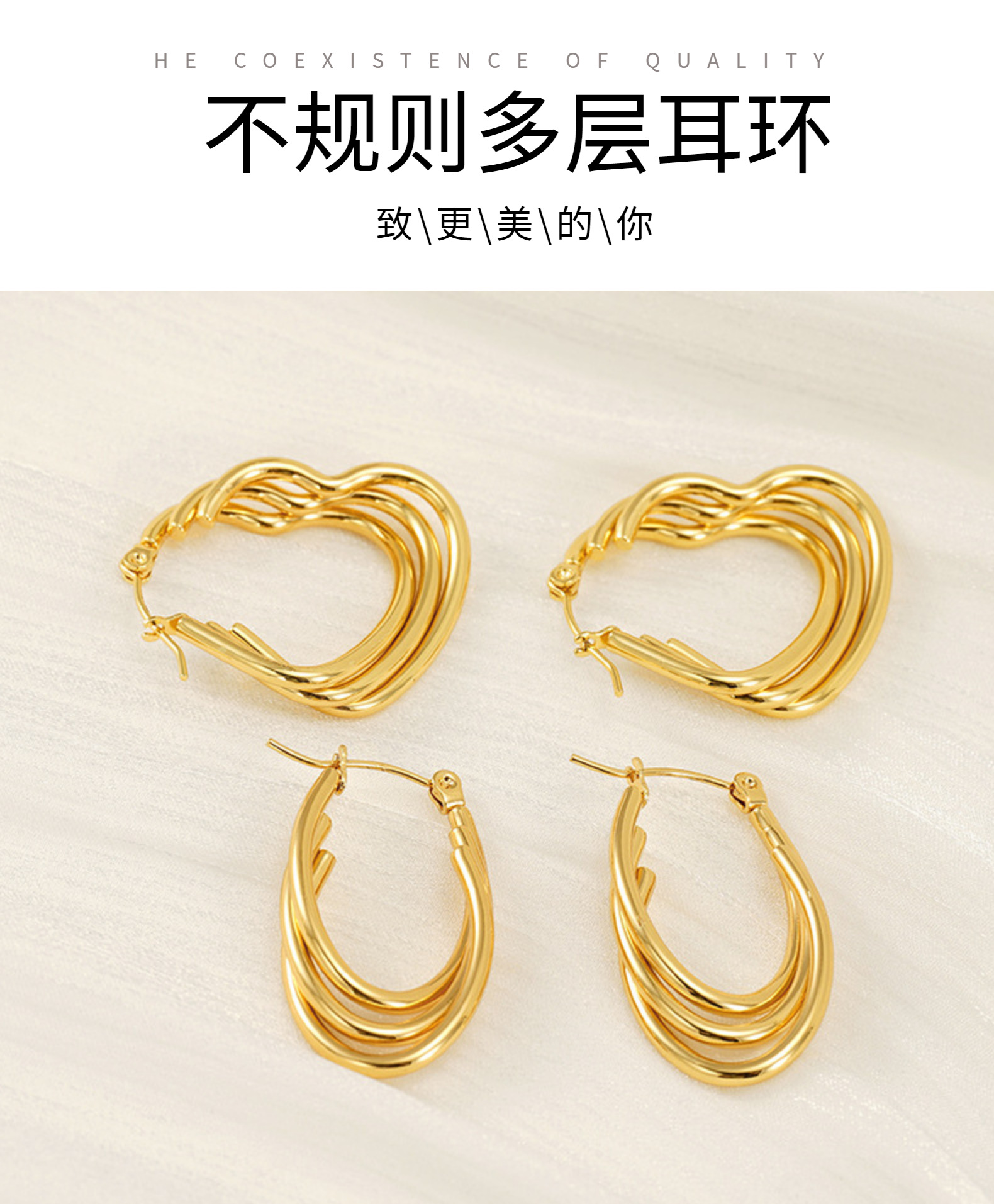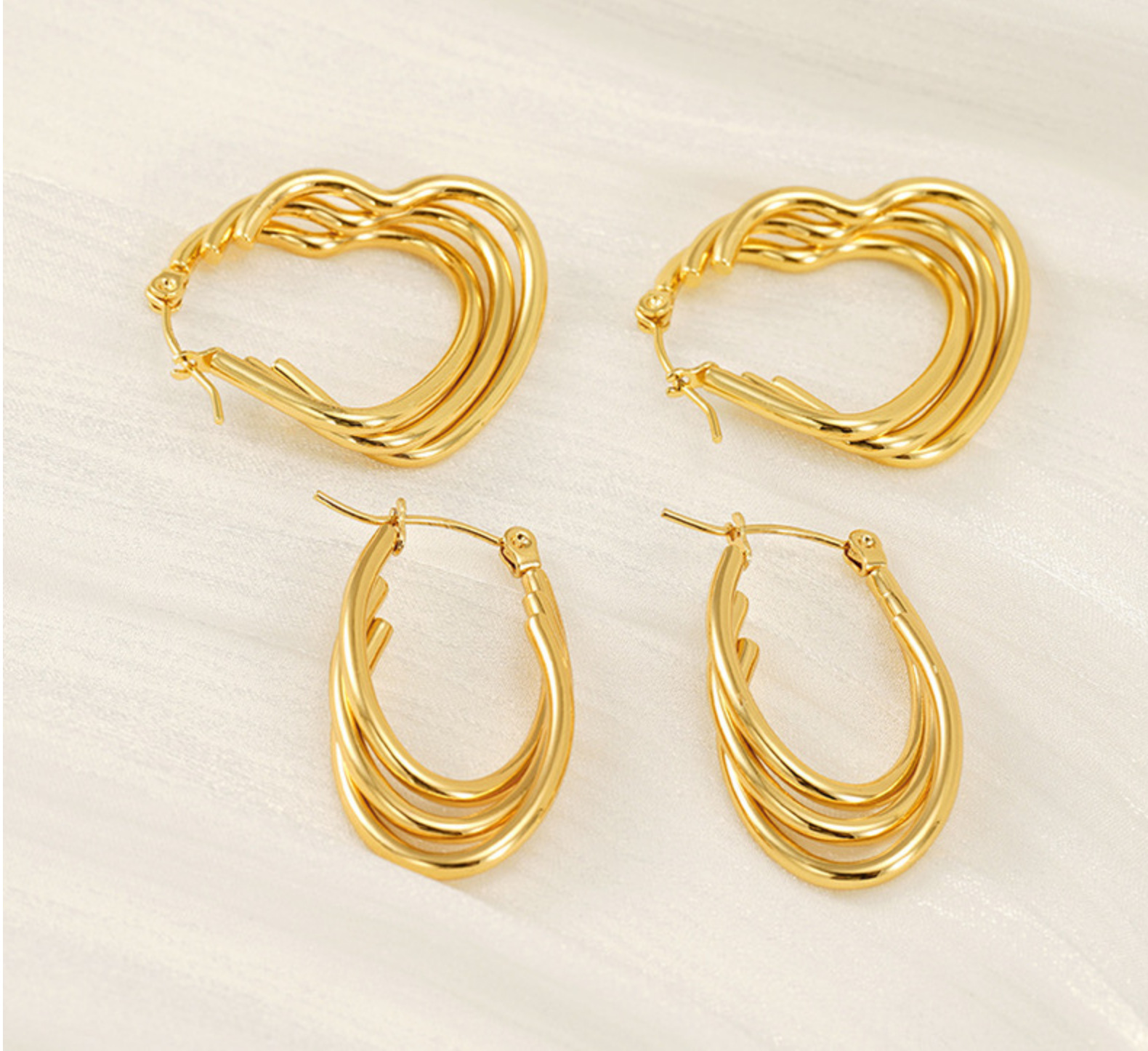 Pendientes de acero inoxidable dorado de 18k sin decoloración Pendientes de acero inoxidable de línea multicapa en forma de corazón Pendientes de hebilla ovalada mujer