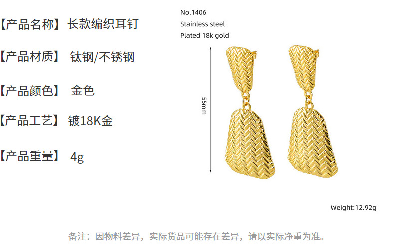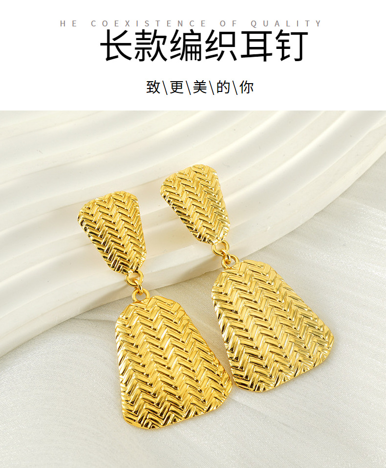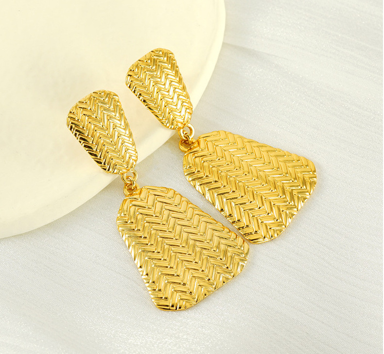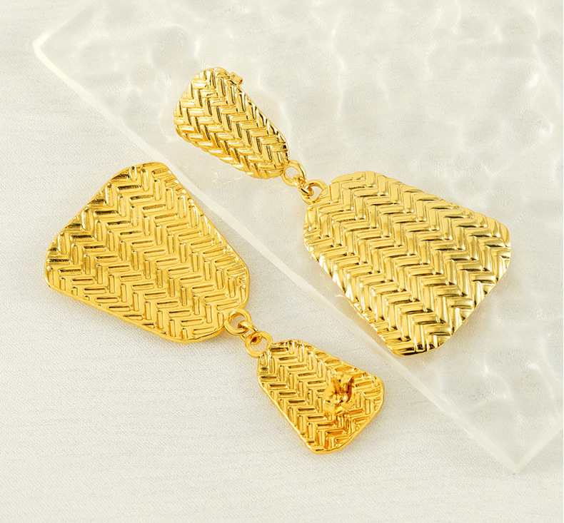 Pendientes de sentido avanzado atmosférico europeo y americano transfronterizo Pendientes irregulares geométricos de acero oxidado de 18K para mujer Pendientes largos tejidos para mujer