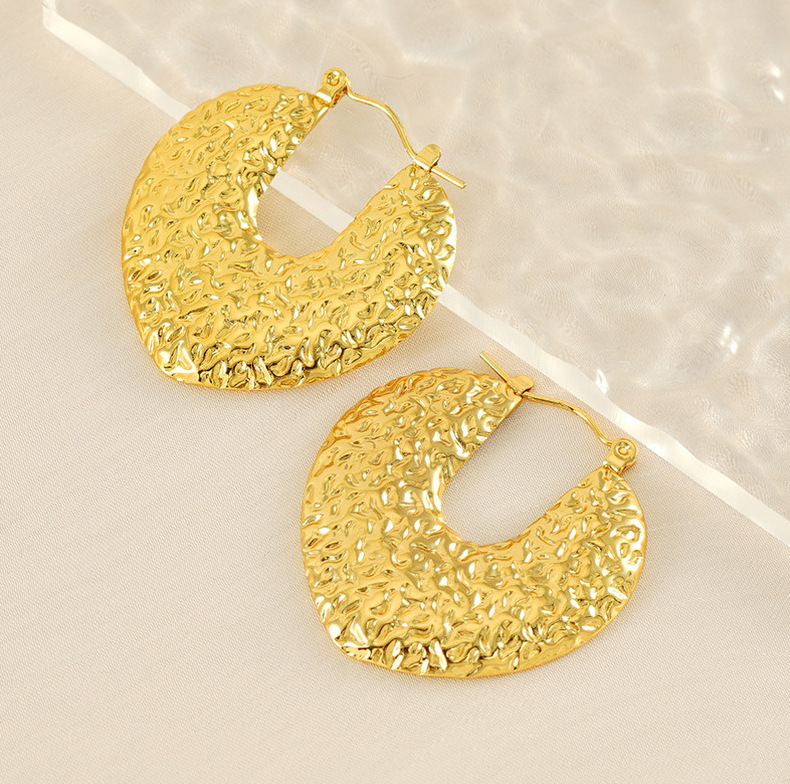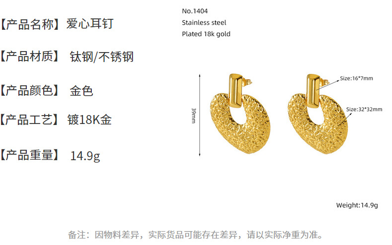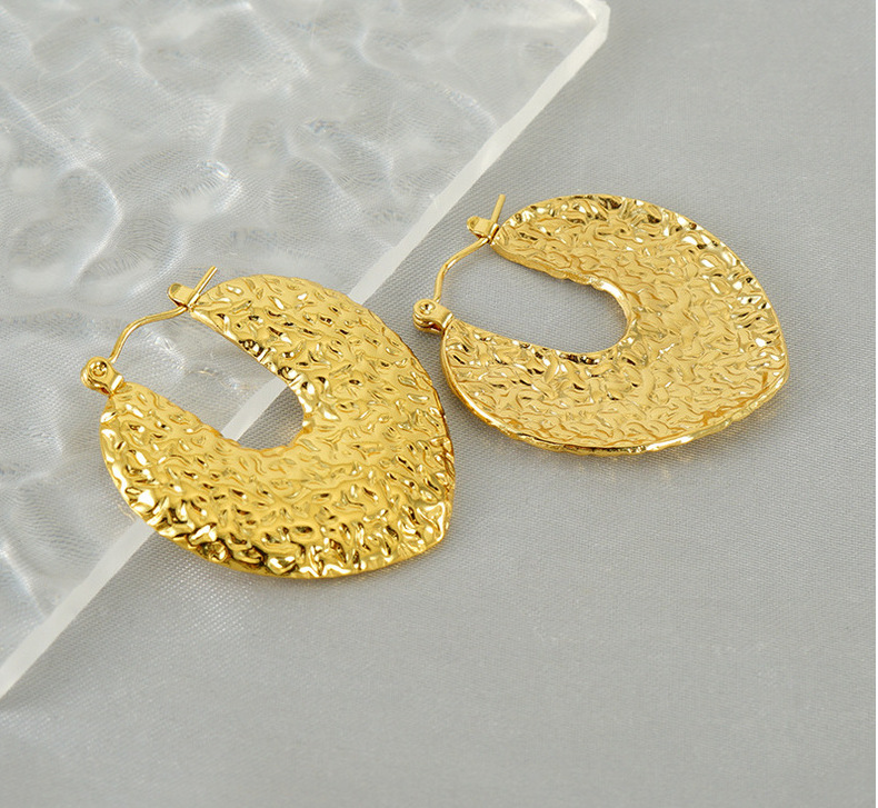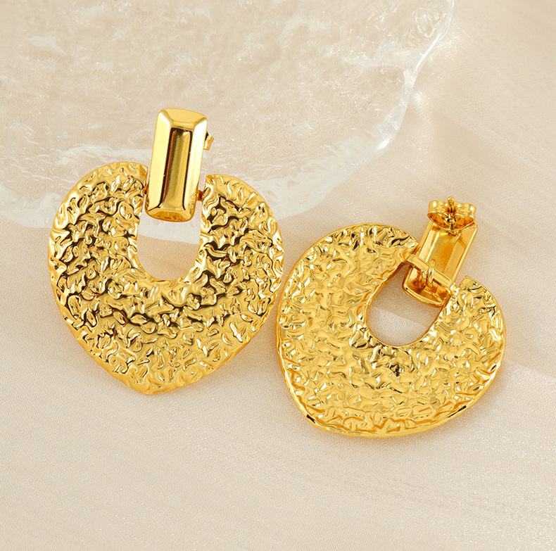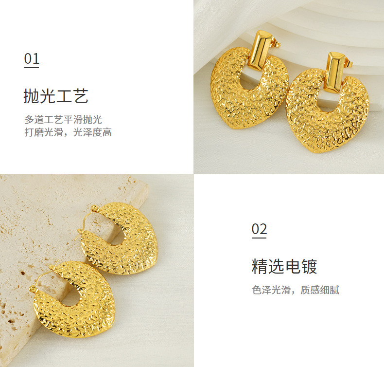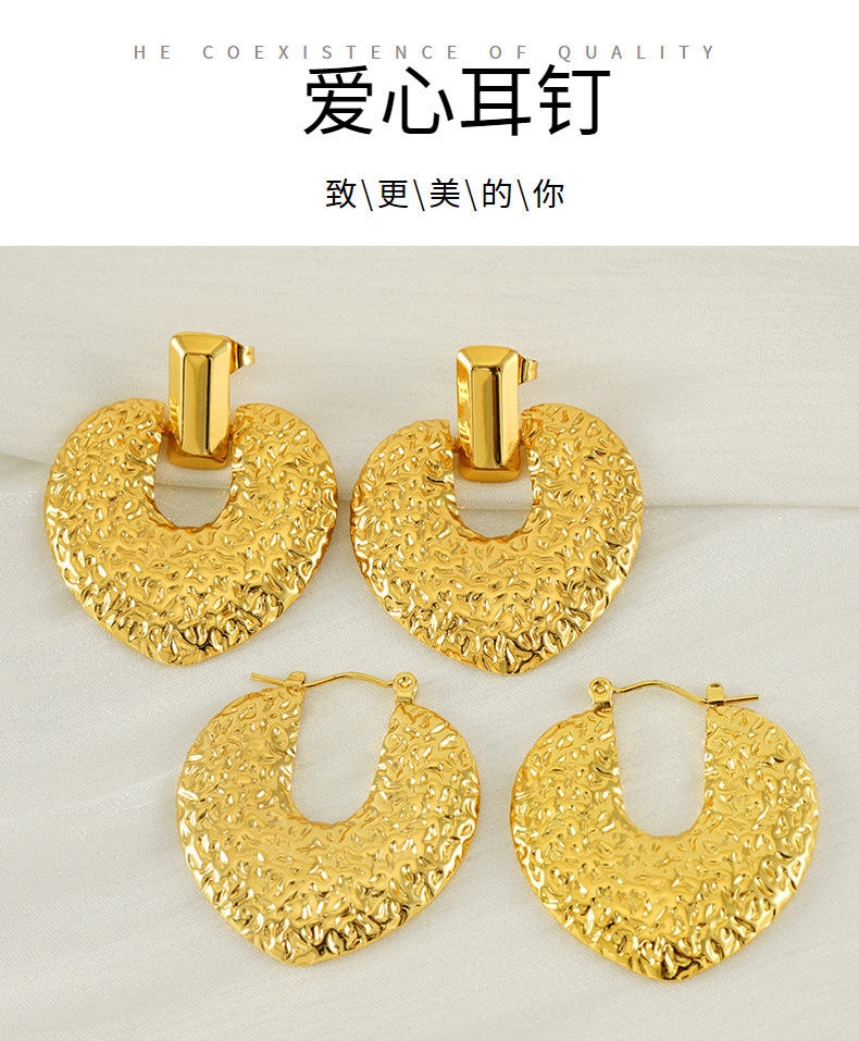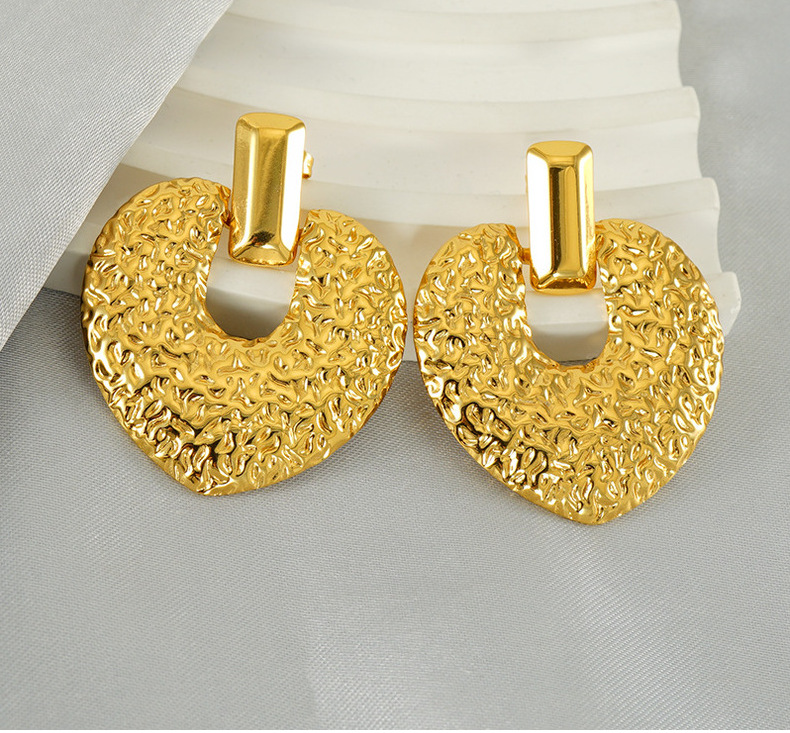 Pendientes geométricos de amor exagerados europeos y americanos chapados en oro de 18 quilates de textura de acero inoxidable pendientes de moda personalizados mujeres al por mayor