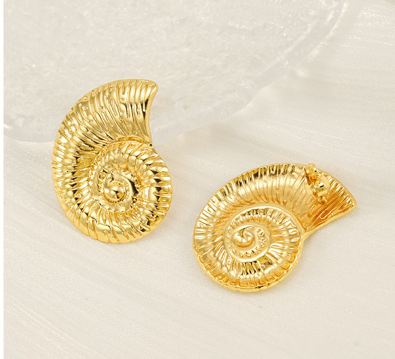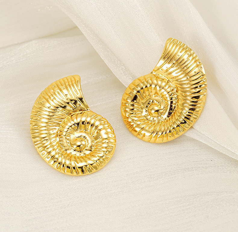 2024 nuevos pendientes de tejido geométrico de concha europea y americana estilo ins acero de titanio chapado en oro de 18 quilates de temperamento personalizado al por mayor