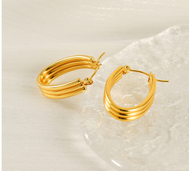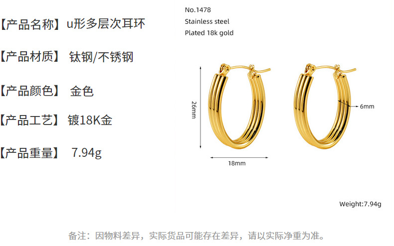 Pendientes circulares multicapa europeos y americanos transfronterizos Pendientes de acero de titanio simples y versátiles Pendientes de acero inoxidable en forma de U