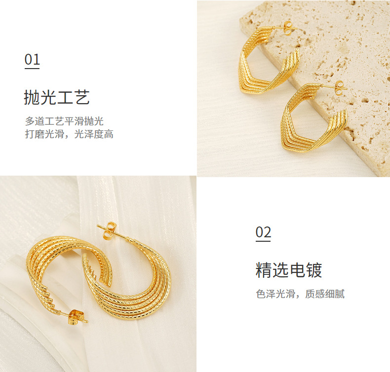 Pendientes de acero inoxidable dorado de 18k de moda transfronteriza para mujer, lujo ligero, pendientes de acero de titanio que no se desvanece