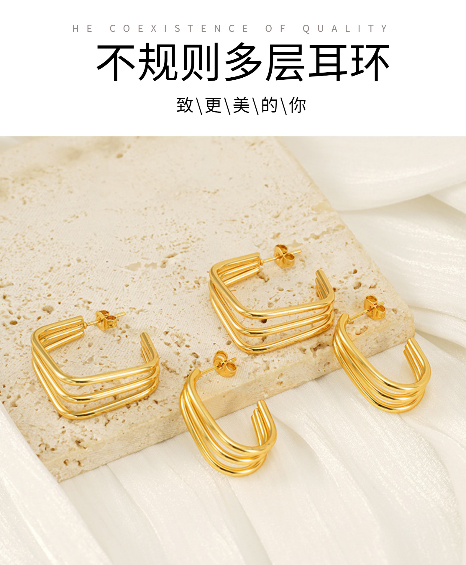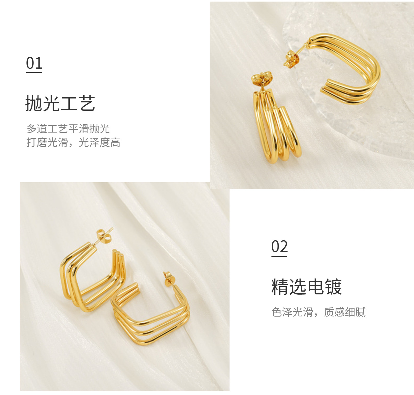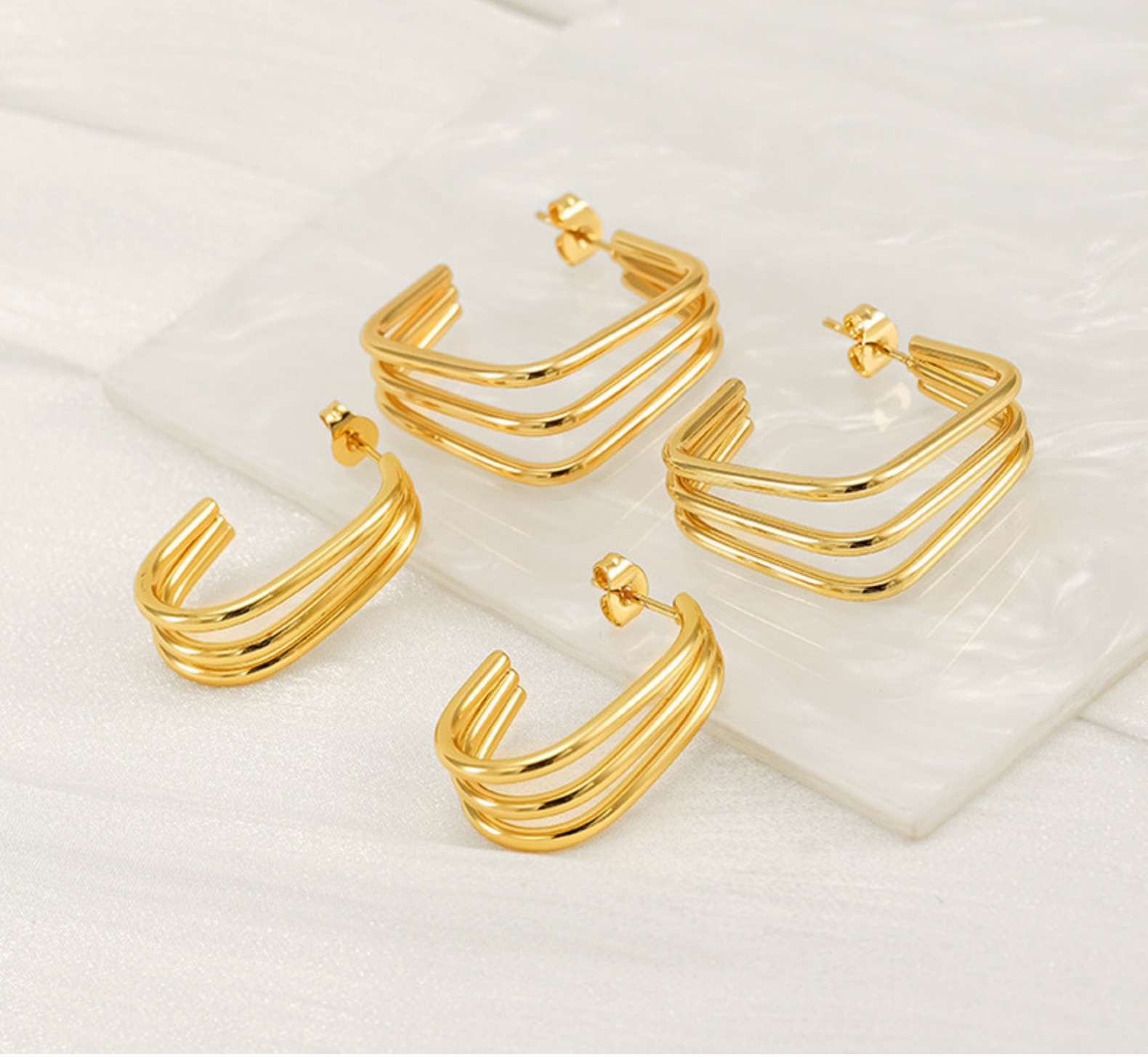 2024ins Pendientes de acero de titanio de viento Pendientes de acero inoxidable de oro geométrico cuadrado simple de oro de 18 quilates para mujer Pendientes europeos y americanos