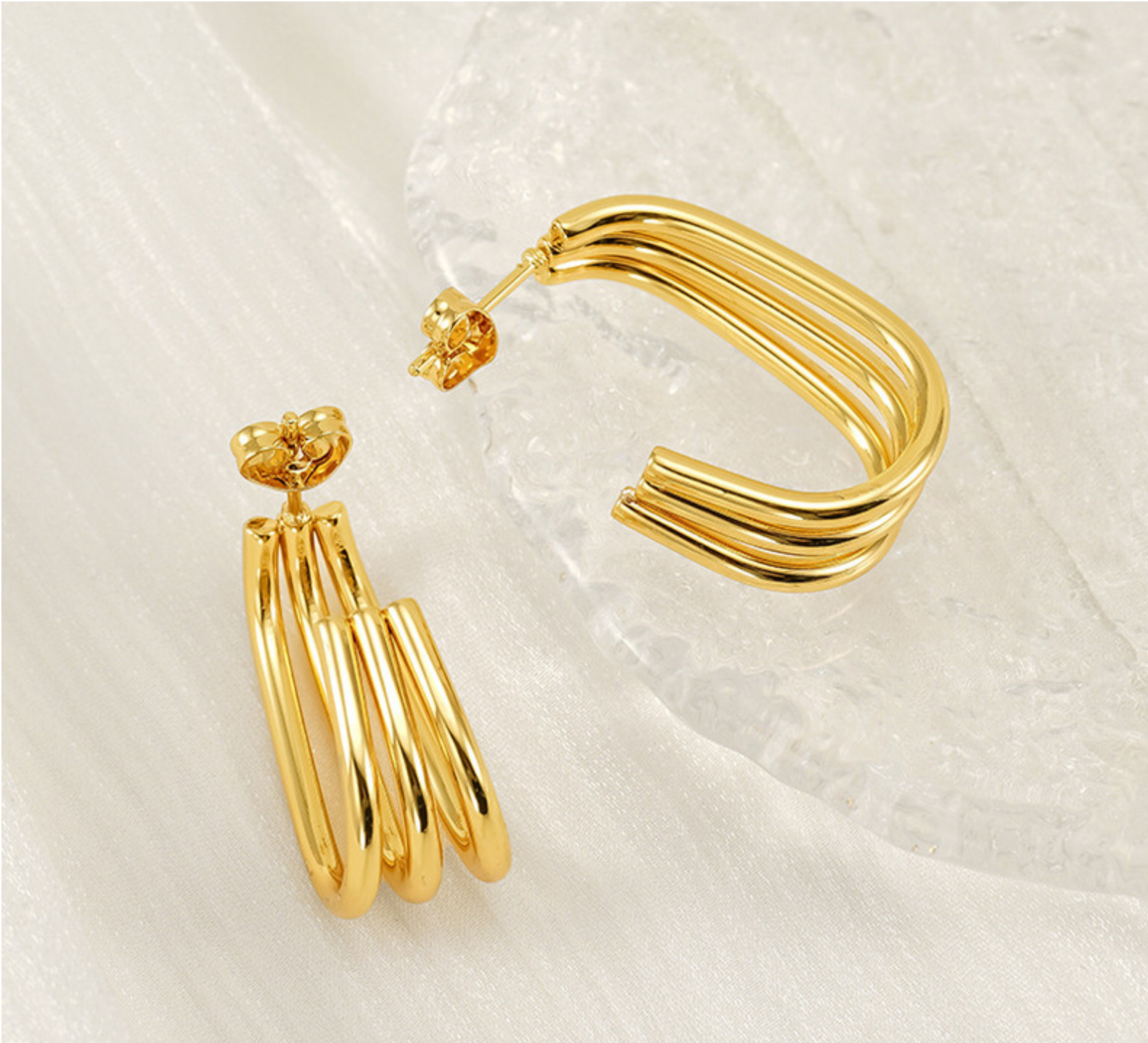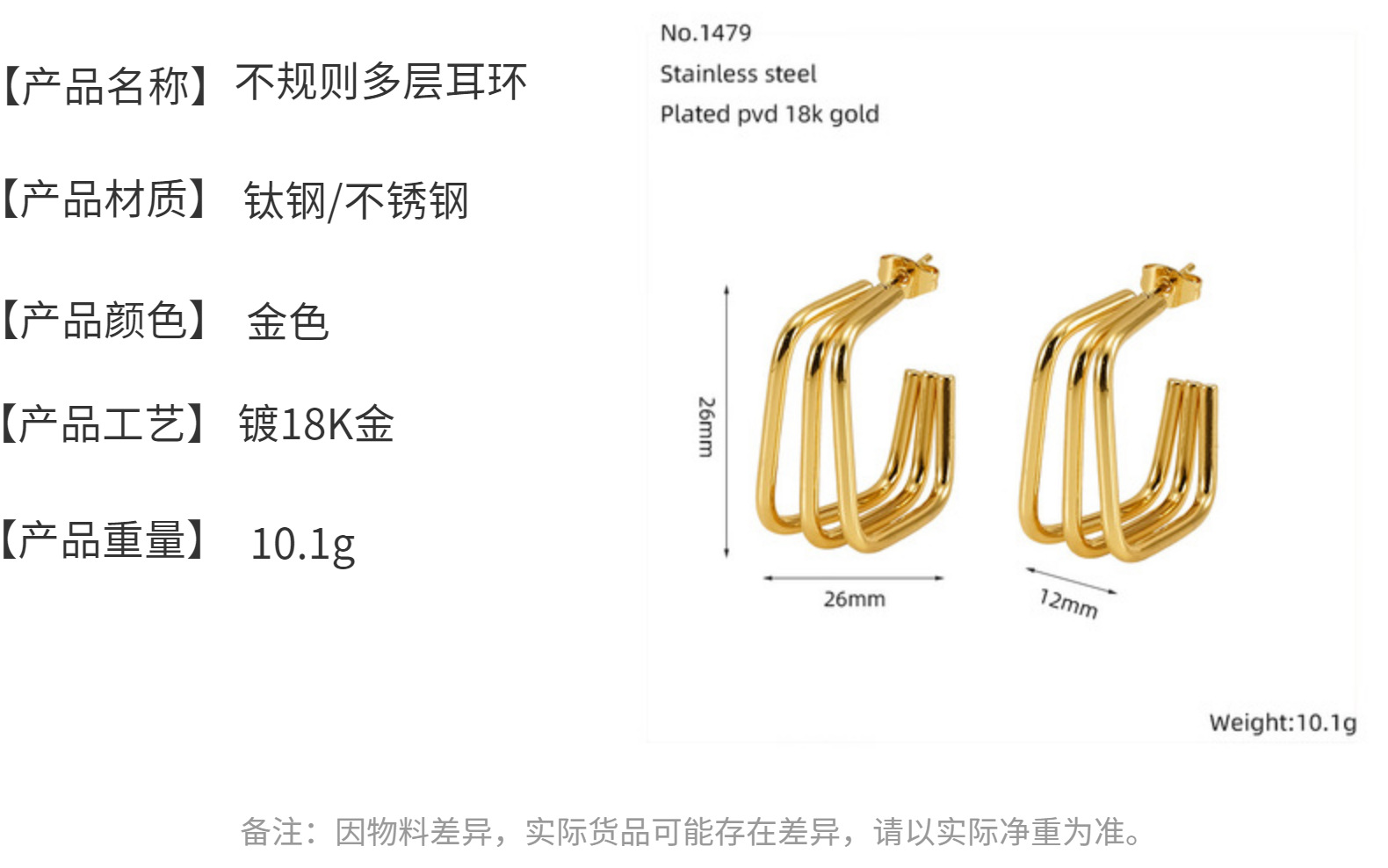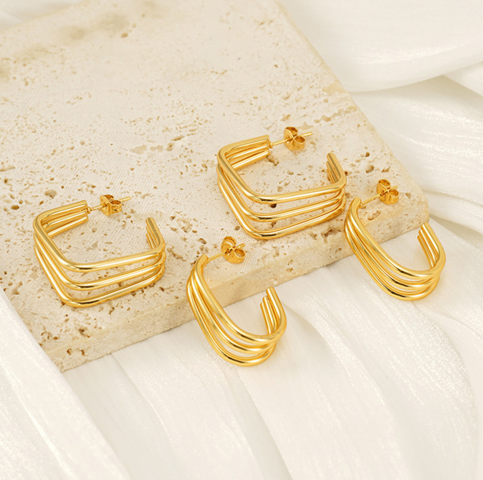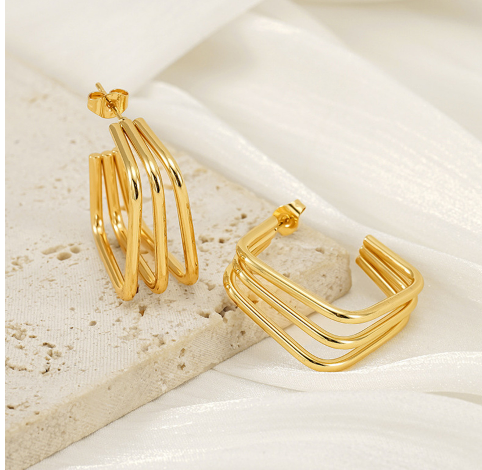 2024ins Pendientes de acero de titanio de viento Pendientes de acero inoxidable de oro geométrico cuadrado simple de oro de 18 quilates para mujer Pendientes europeos y americanos