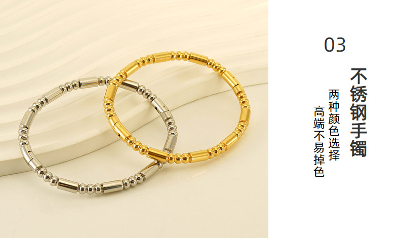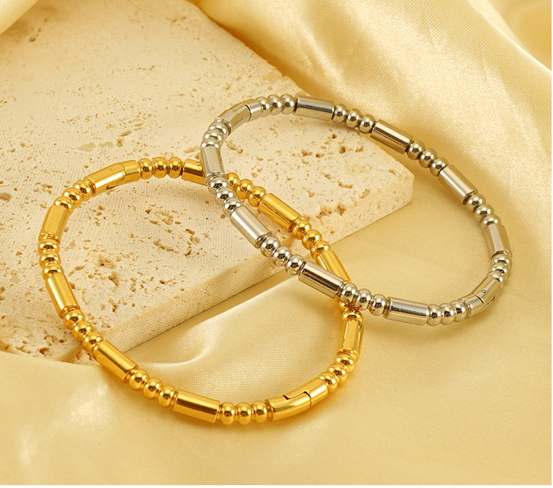 Transfronterizo europeo y americano popular de bambú redondo grano pulsera de acero inoxidable 18K oro cerrado pulsera de acero inoxidable pulsera de todos los partidos