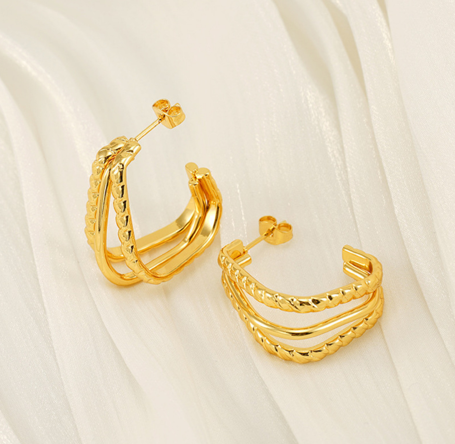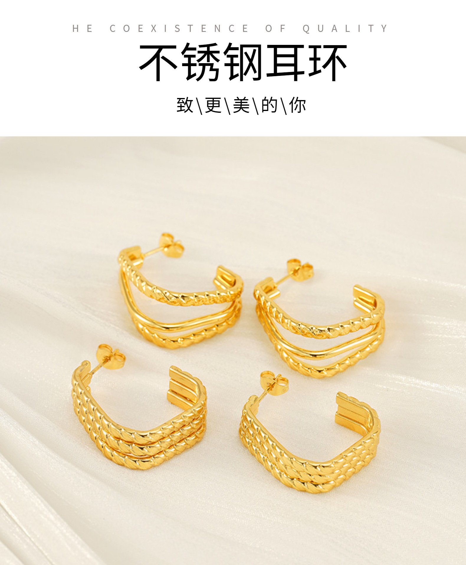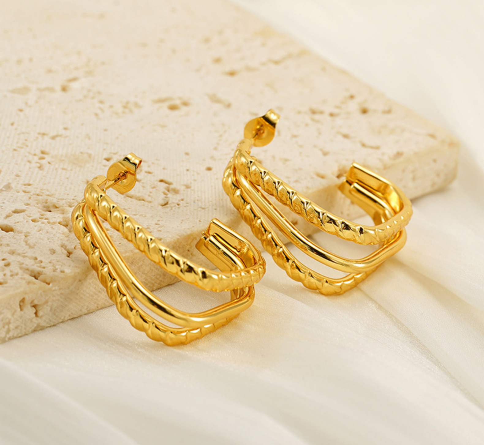 Pendientes de acero de titanio dorado multicapa rojo de la red de viento ins Pendientes de línea geométrica de acero inoxidable para mujer de moda de lujo ligero para mujer