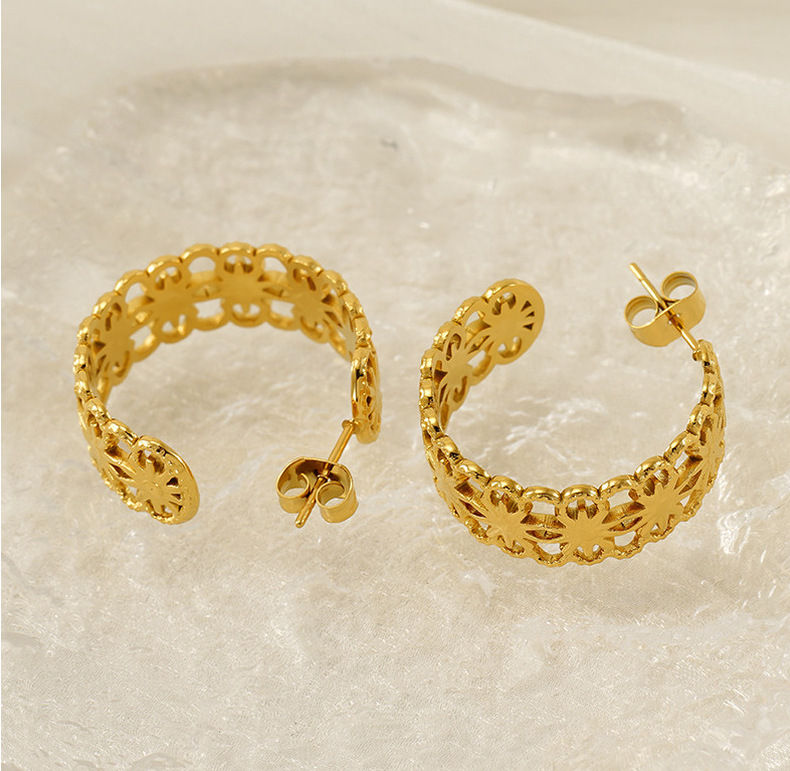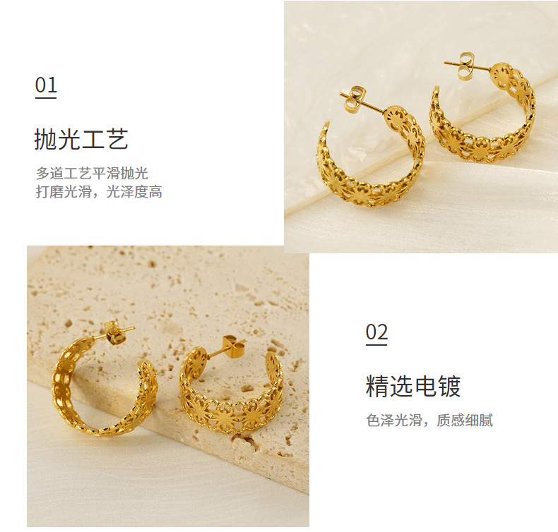Pendientes de acero inoxidable con patrón hueco geométrico nuevo estilo de moda europea y americana, pendientes chapados en oro simples y versátiles