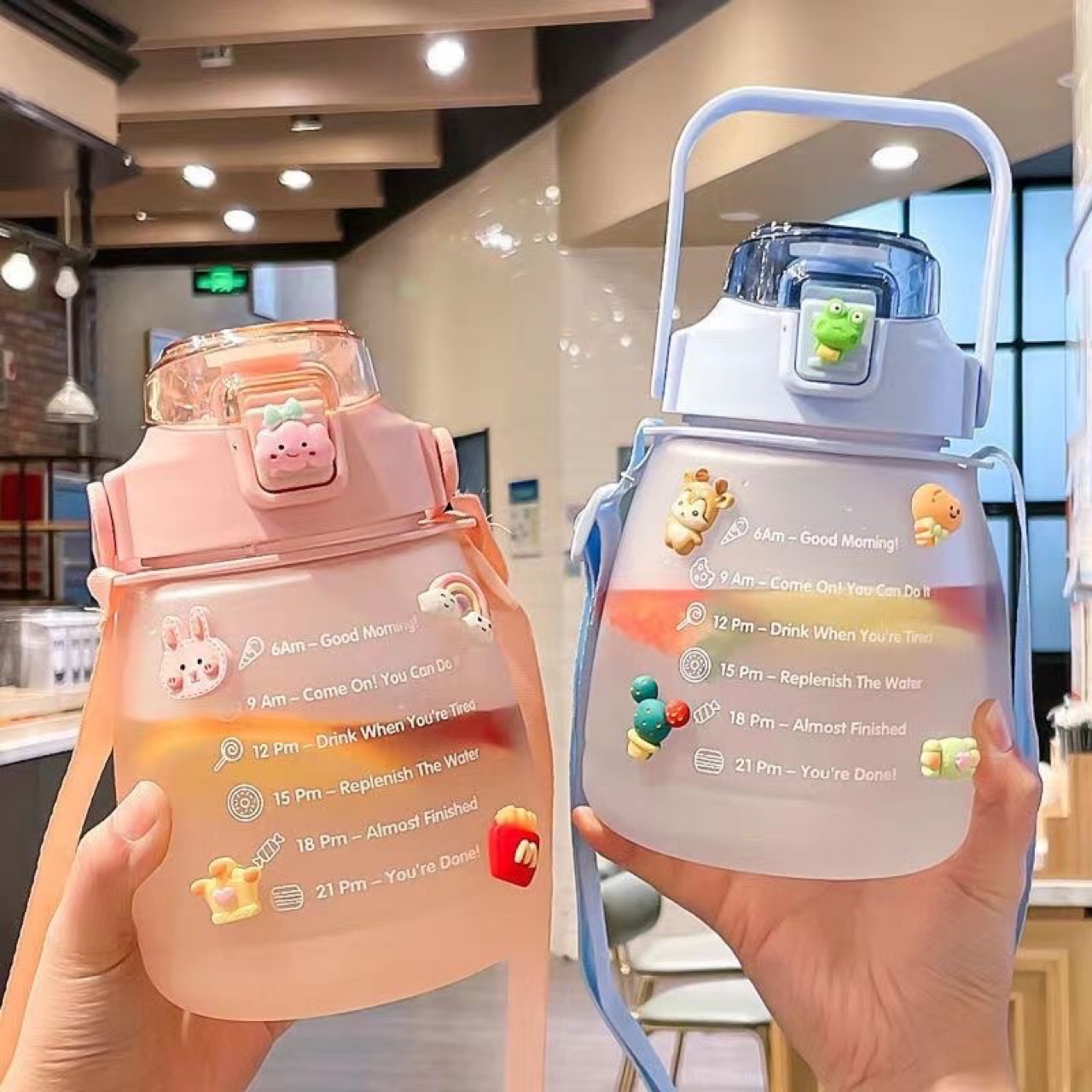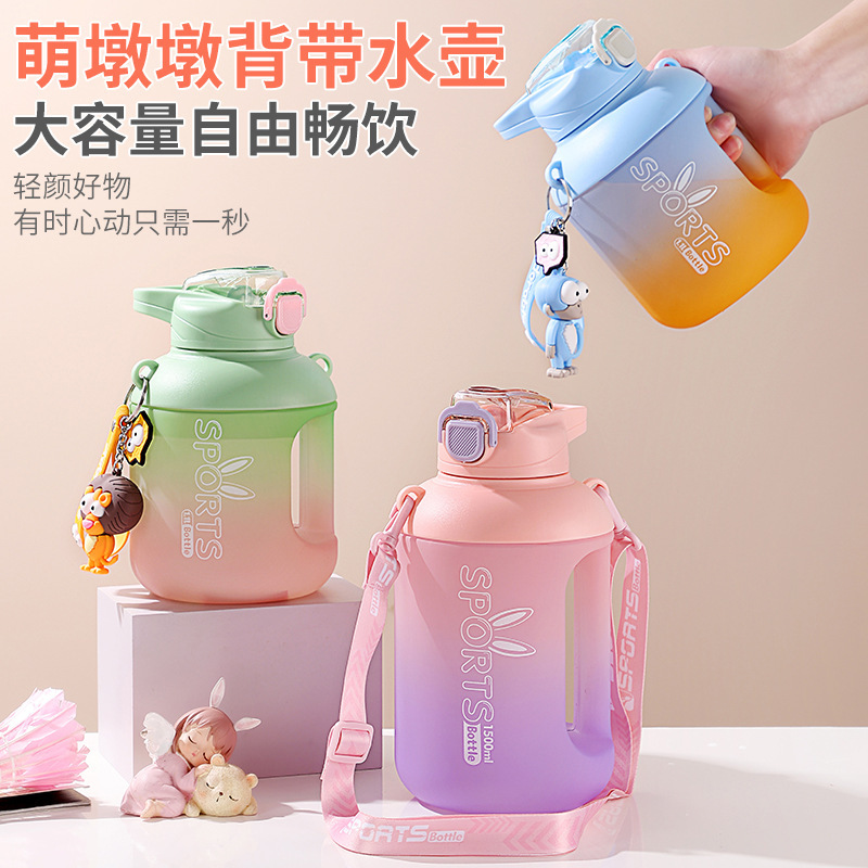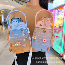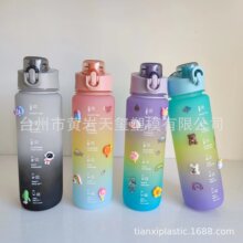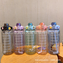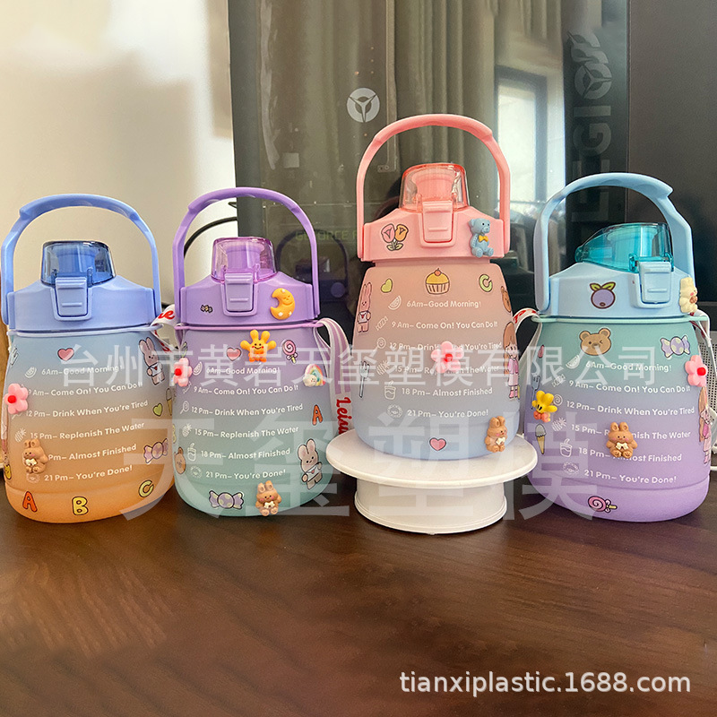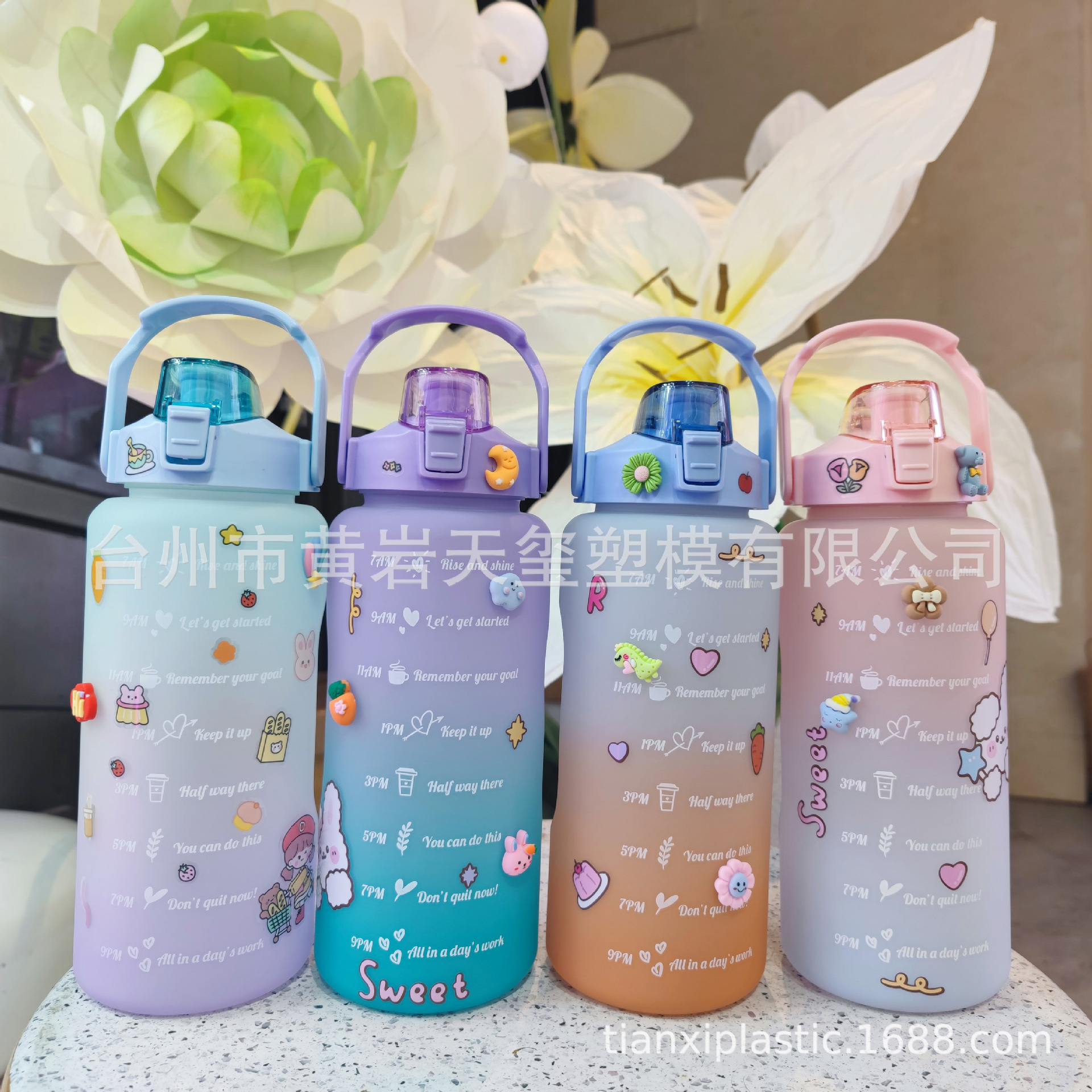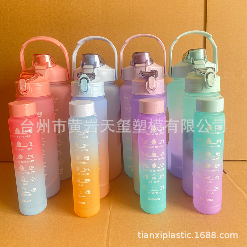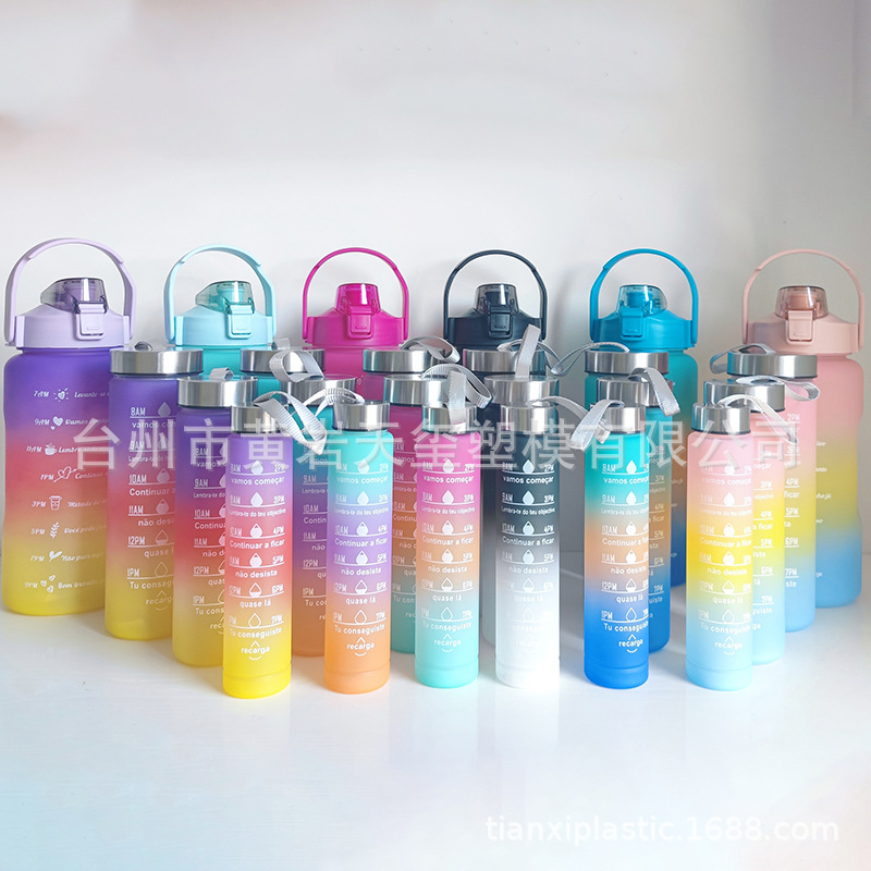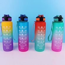 Botella de agua deportiva de 1000ml para Amazon - Taza con pajita, esmerilada, con degradado de color, taza con apertura por pulsación, color personalizable