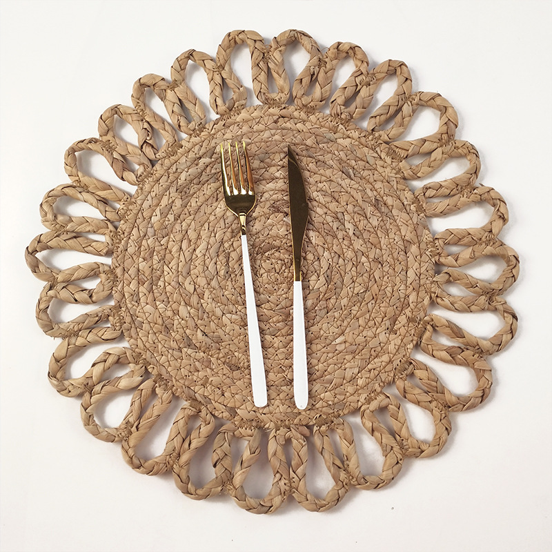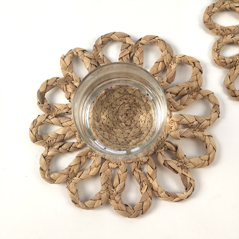 Sol en forma de almohadilla de mesa almohadilla de taza de lujo ligero de alto nivel de calabaza de hierba tejida mortero de calabaza tejida de hierba gruesa almohadilla de aislamiento térmico