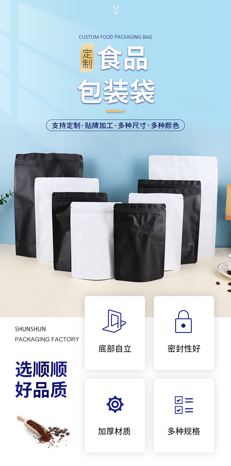 Bolsa de café con cremallera y válvula de escape unidireccional, para alimentos secos, té y almacenamiento, suministro al por mayor