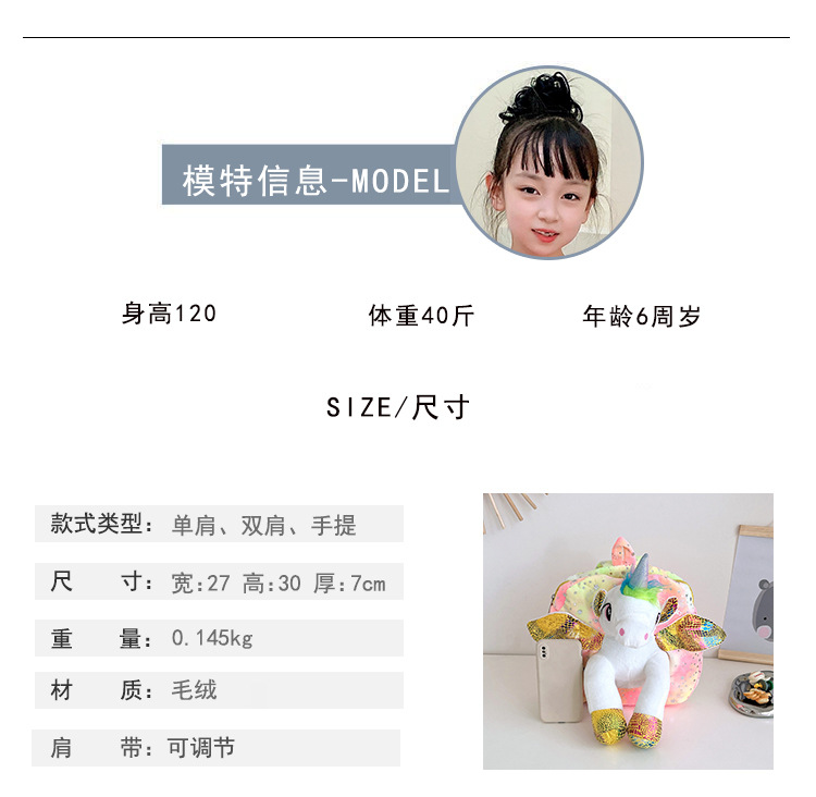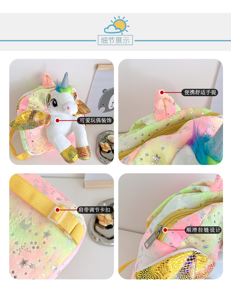 Kindergarten niños de dibujos animados peluche juguete mochila unicornio pequeña bolsa comercio exterior