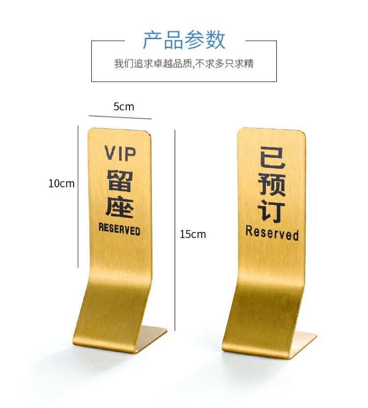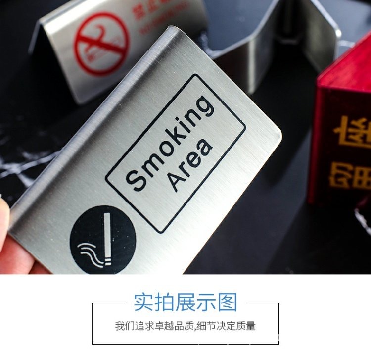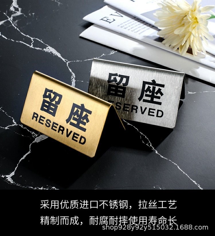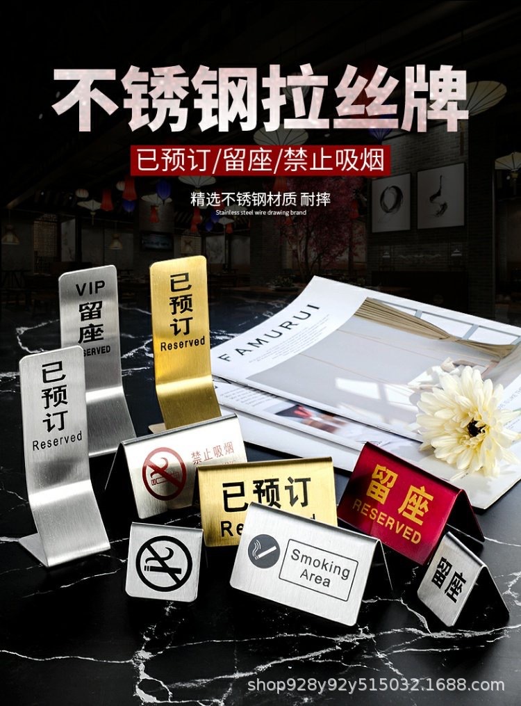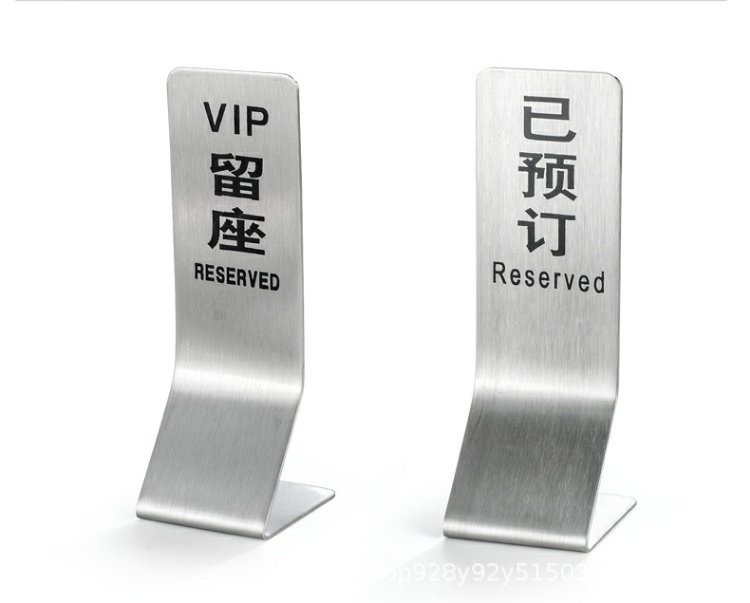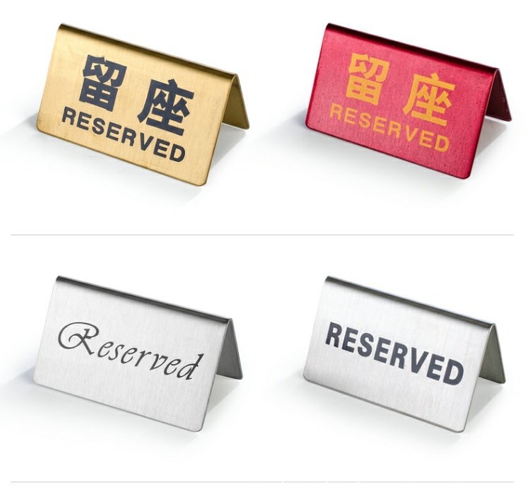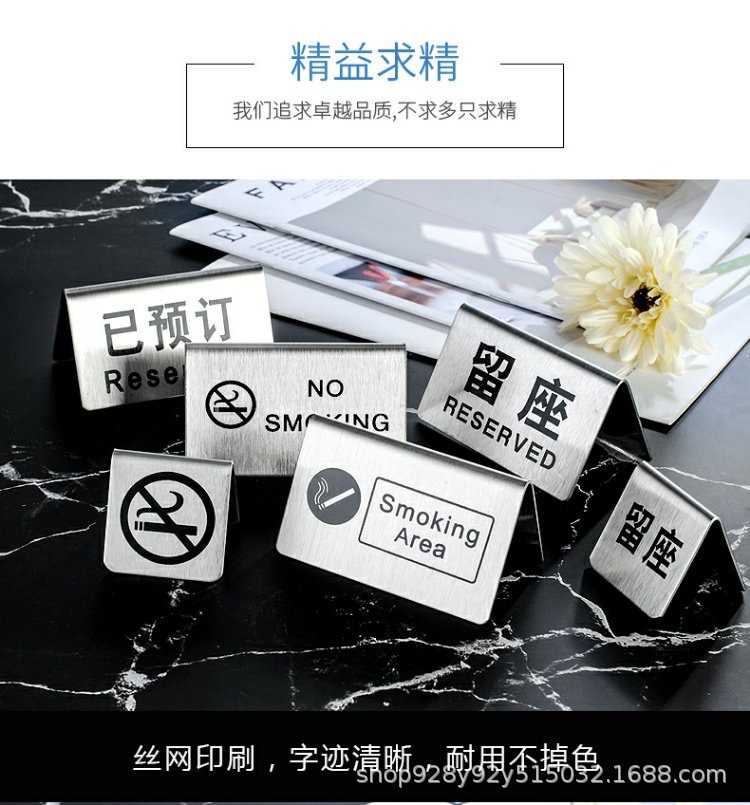 Señal de mesa doble cara de acero inoxidable Señal de "Reservado" en chino e inglés Señal de "Prohibido fumar" Para uso comercial