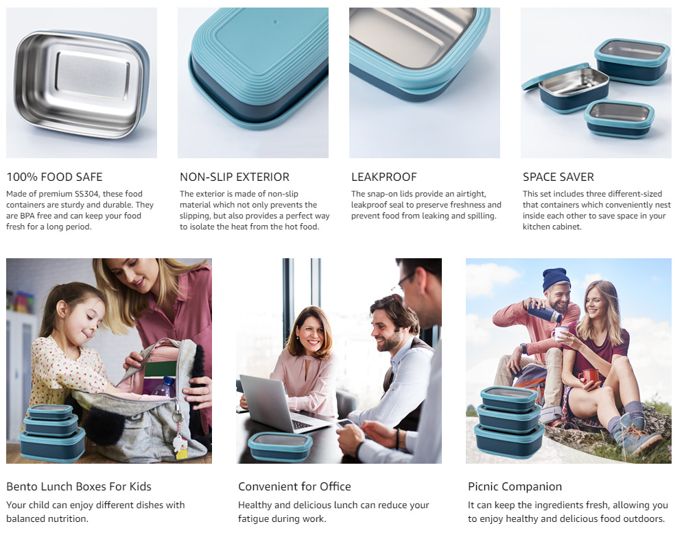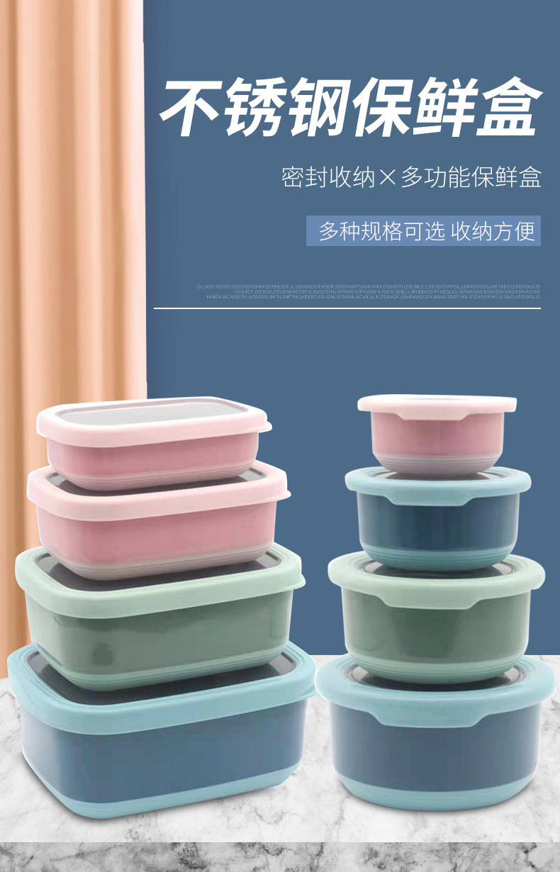 Caja de conservación de alimentos de acero inoxidable para uso diario con tapa, lonchera, caja sellada, caja para congelar alimentos, caja de refrigeración, caja de almacenamiento para refrigerador