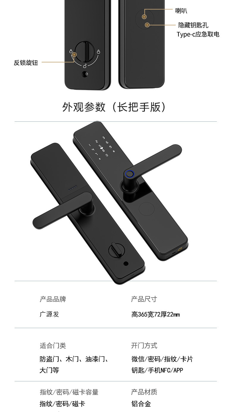 Cerradura inteligente con huella dactilar y contraseña para apartamentos - Control remoto WiFi, para hotel/alquiler diario, cerradura con tarjeta para puerta de madera antirrobo