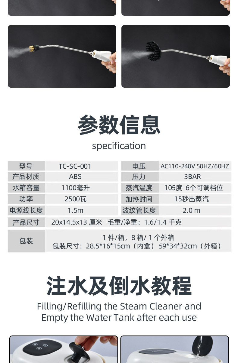 Limpiador a vapor de alta presión y alta temperatura, pequeño aire acondicionado doméstico, campana extractora de cocina, máquina de limpieza con calentamiento instantáneo, estándares europeos, americanos y británicos