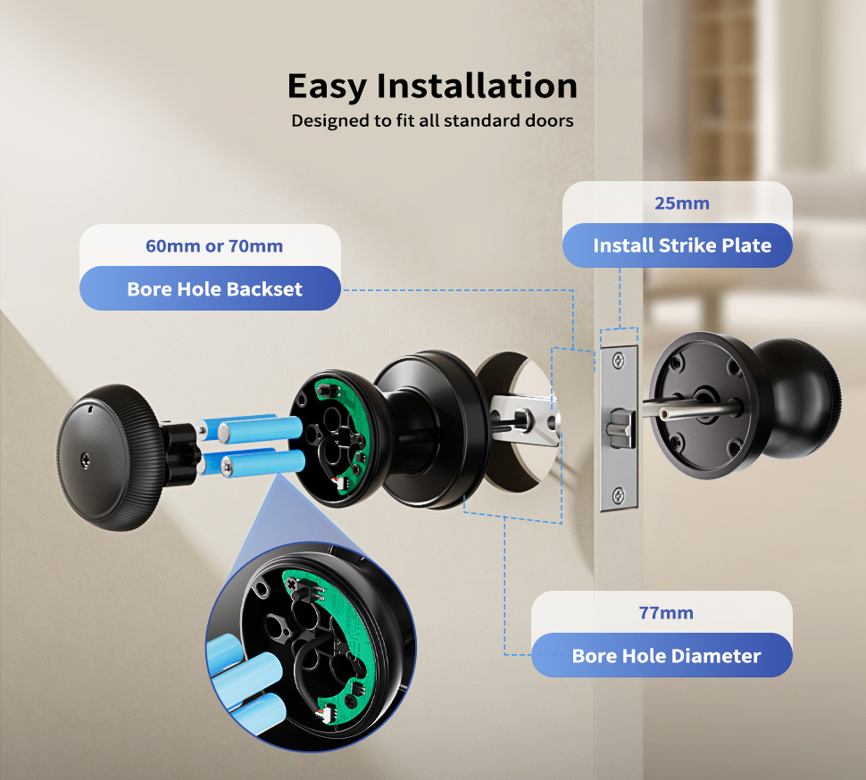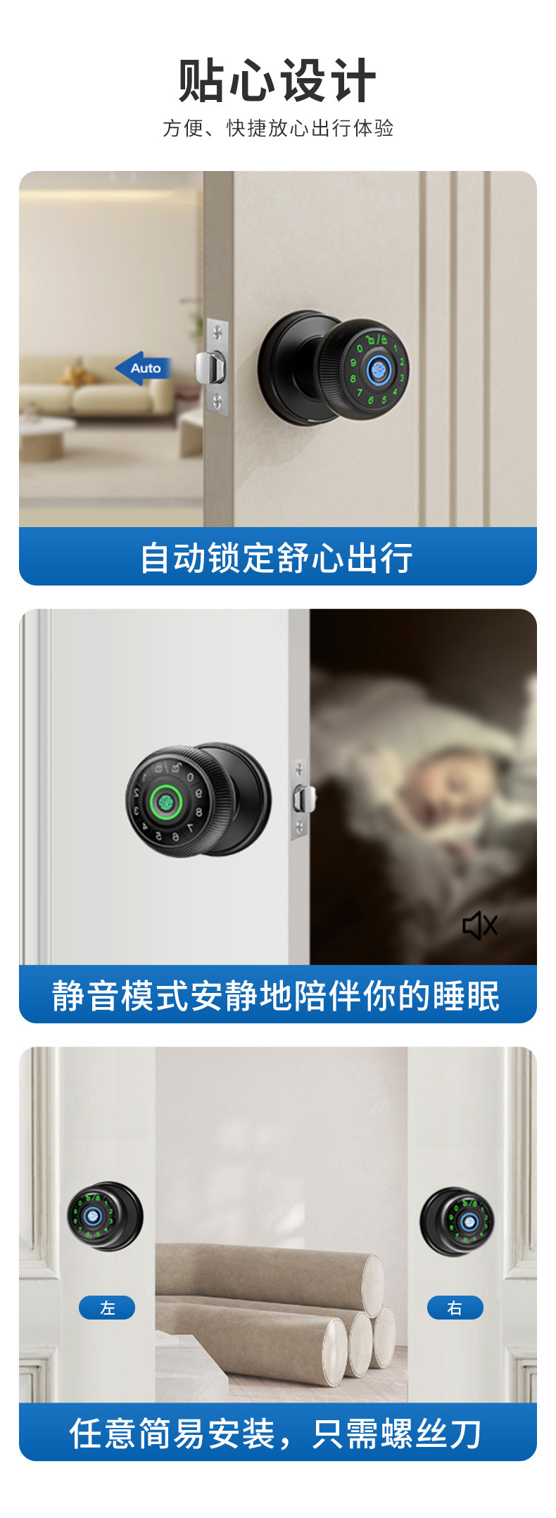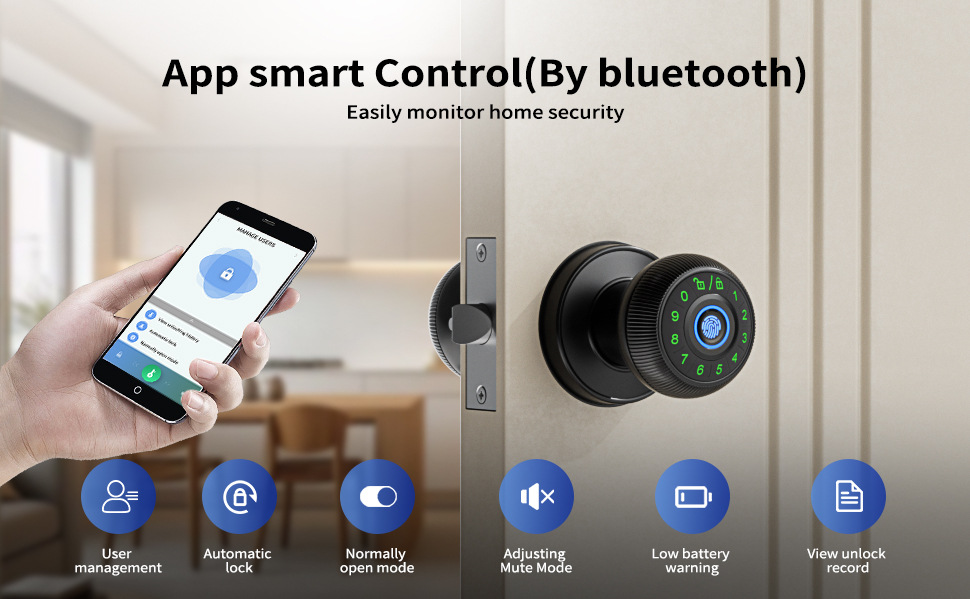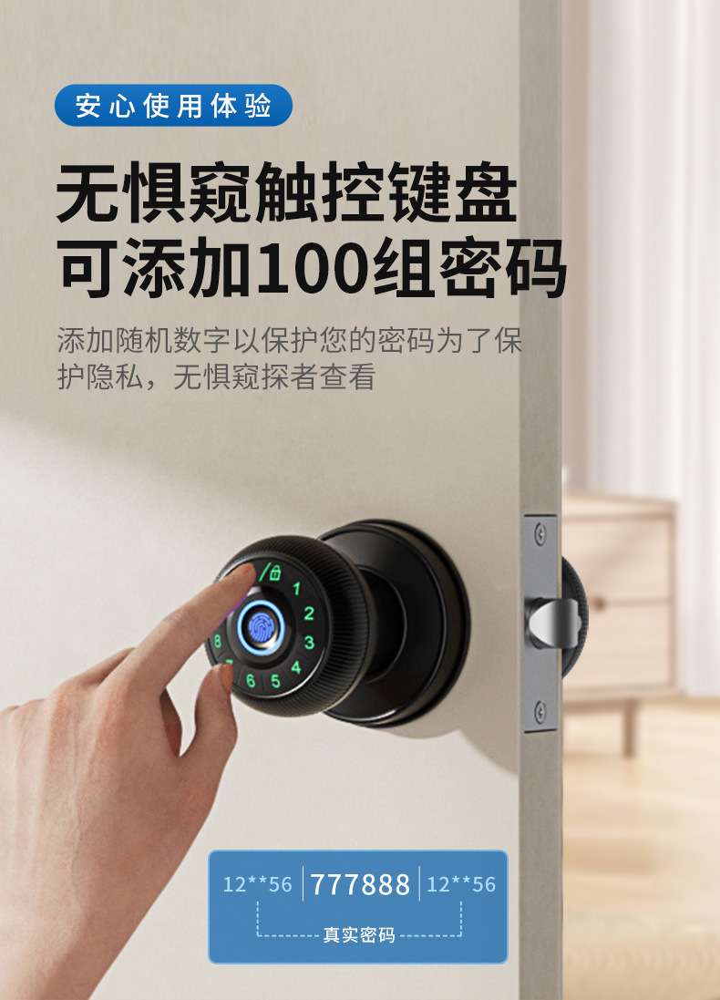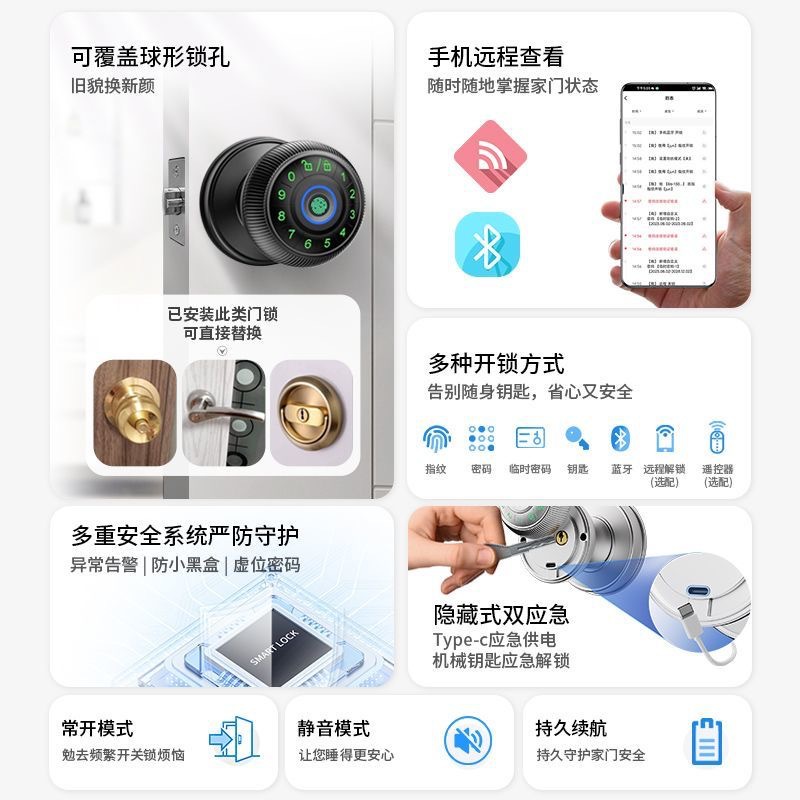Cerradura esférica inteligente con huella dactilar/contraseña/Bluetooth - Cerradura esférica con graffiti, nuevo producto - Suministro especial transfronterizo para Amazon