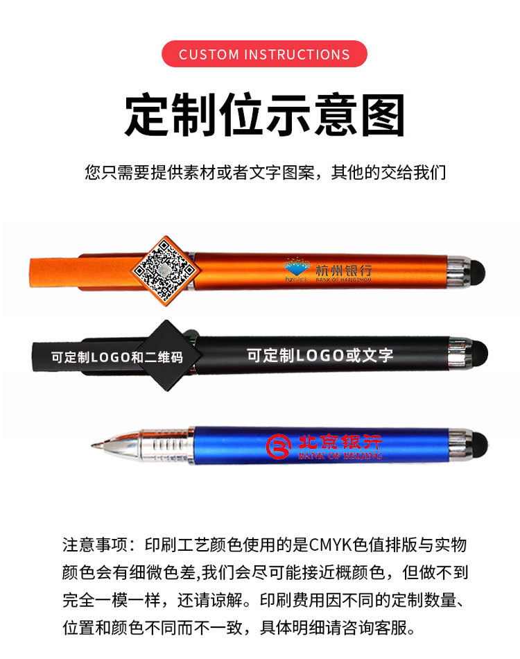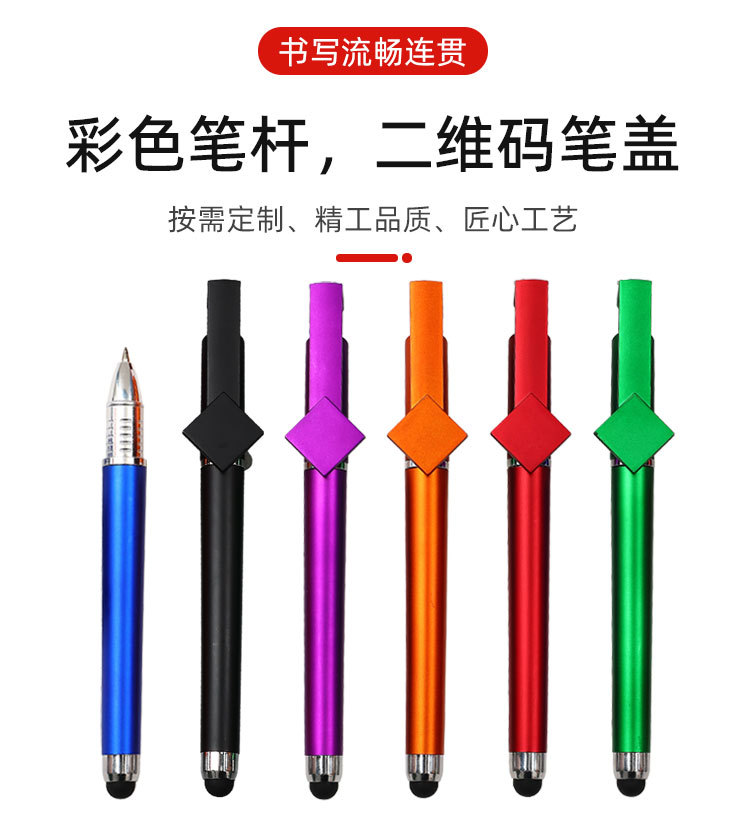 Impresión personalizada de códigos QR publicitarios soporte de teléfono móvil pantalla táctil cuatro en uno 0.5m pluma neutra de publicidad negra