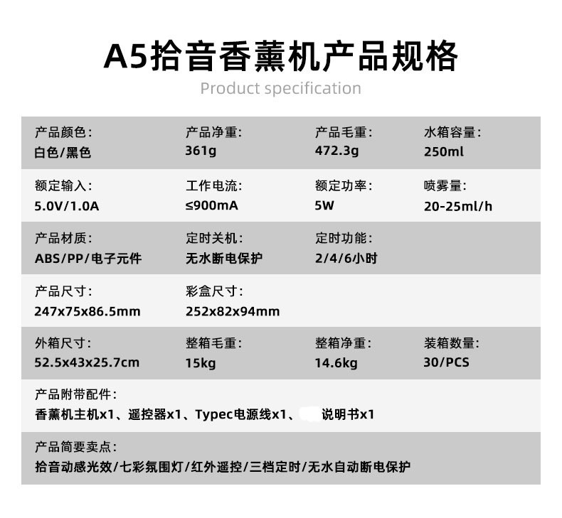 | Color | DQ - 709 Blanco, DQ - 709 Negro, DQ - 709 Blanco + aceite esencial KEO004 (4 botellas), DQ - 709 Negro + aceite esencial KEO004 (4 botellas), DQ - 709 Blanco + 2 botellas de aceite esencial al azar, DQ - 709 Negro + 2 botellas de aceite esencial al azar |