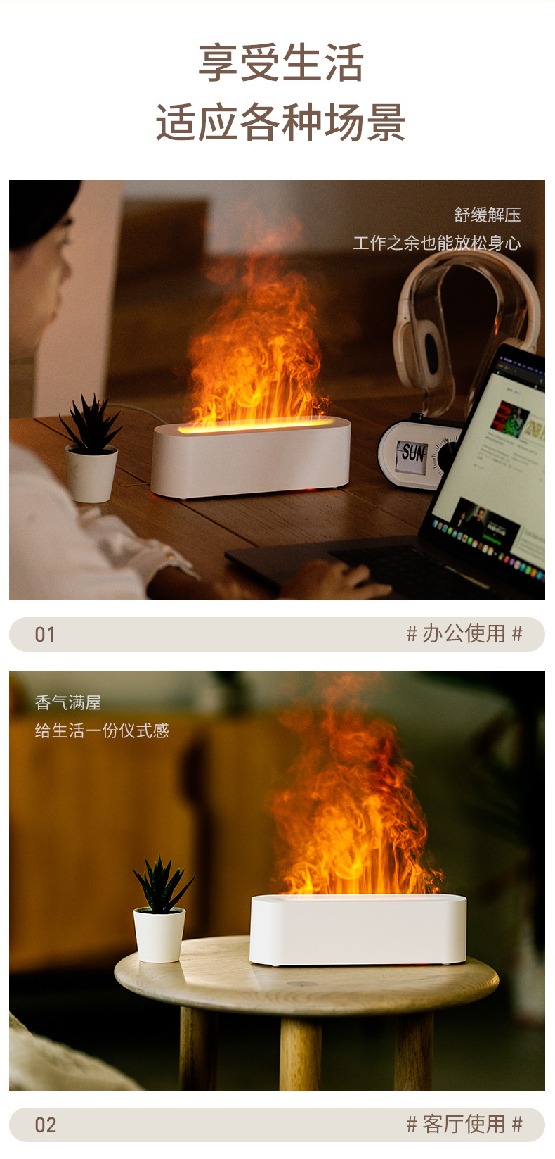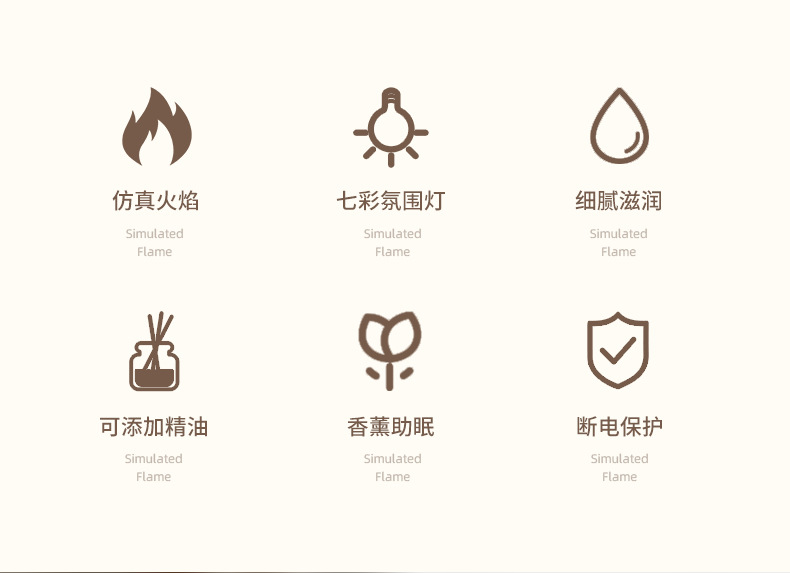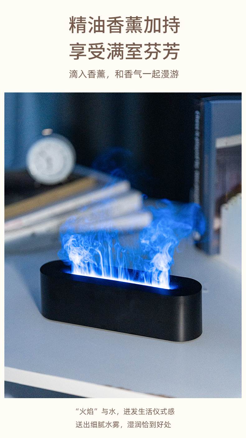 Nuevo colorido simulador de llama de aroma mini aceite esencial doméstico pulverización automática de aroma humidificador de aire USB transfronterizo