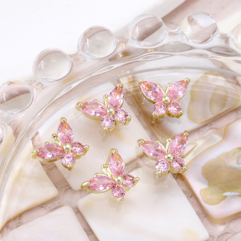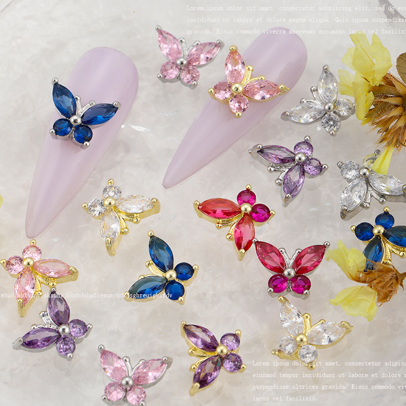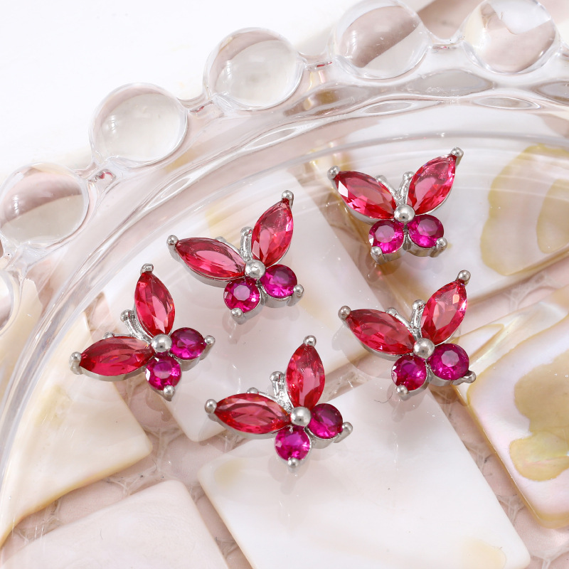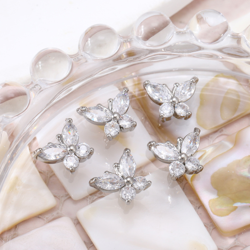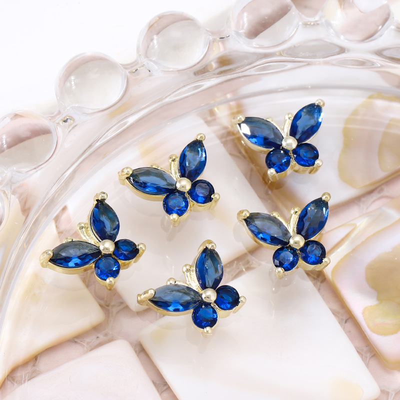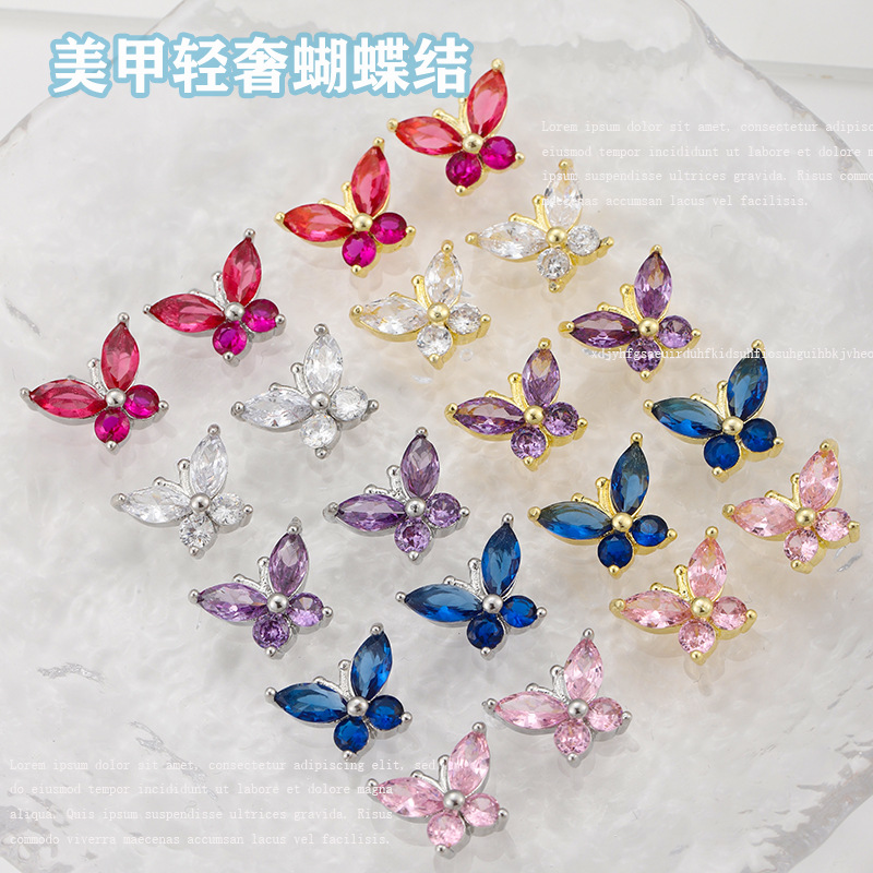 Lujo ligero súper centelleante mariposa de circón joyería de uñas metal súper hada pequeña mariposa manual uñas accesorios al por mayor