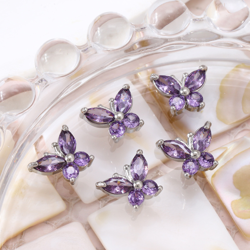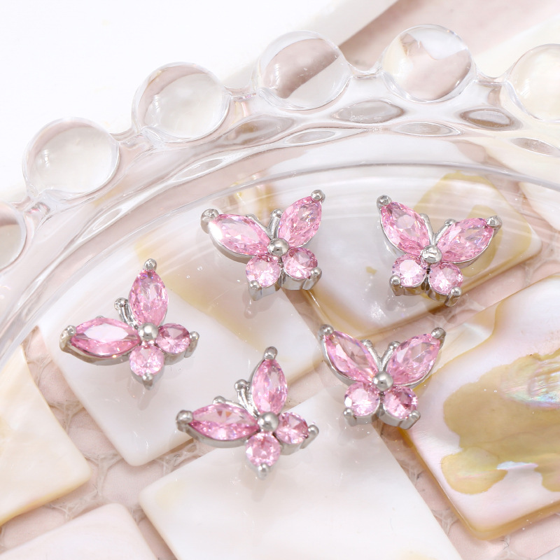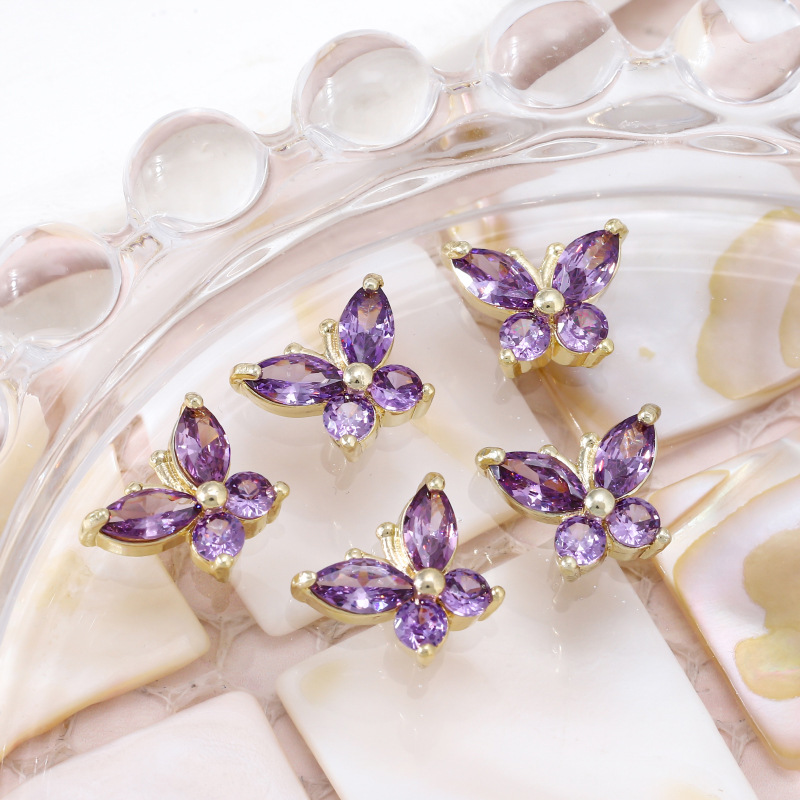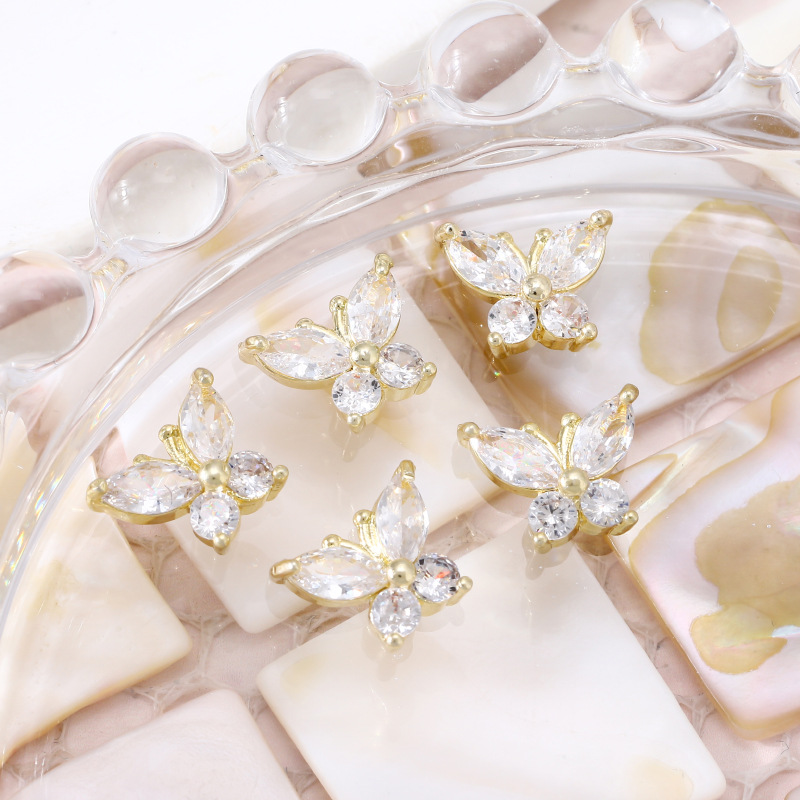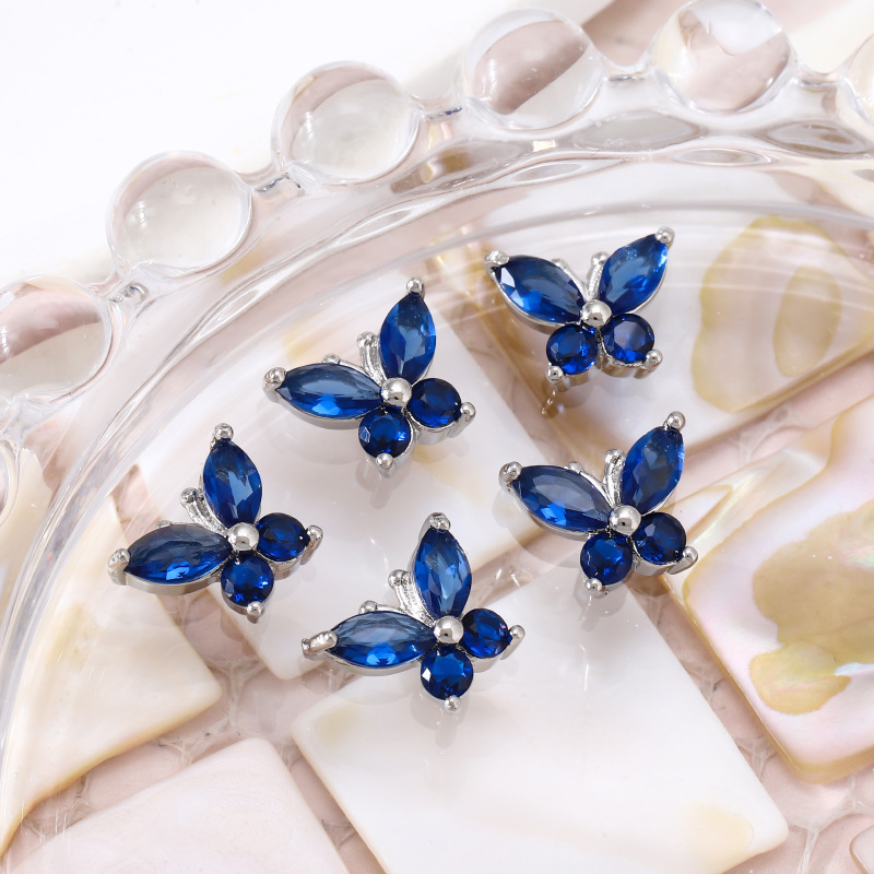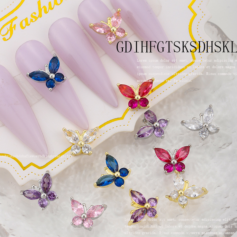 Lujo ligero súper centelleante mariposa de circón joyería de uñas metal súper hada pequeña mariposa manual uñas accesorios al por mayor