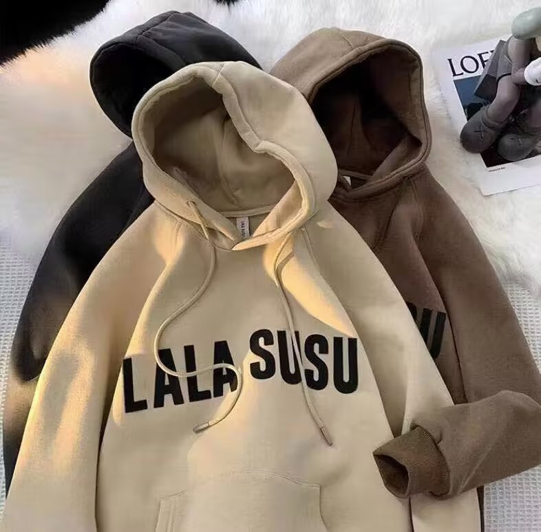 Letra japonesa impresión fleece-forrado con capucha suéter de los hombres de la marca de moda suelta estilo perezoso todo partido pareja abrigo