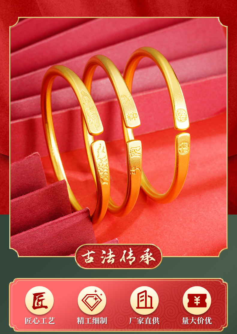 Pulsera de oro de arena vietnamita para damas, paz y alegría durante mucho tiempo, apertura, pulsera de método antiguo, joyería de anillo de aleación de latón