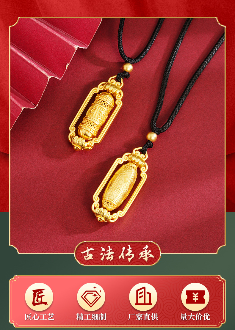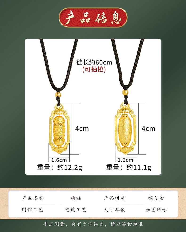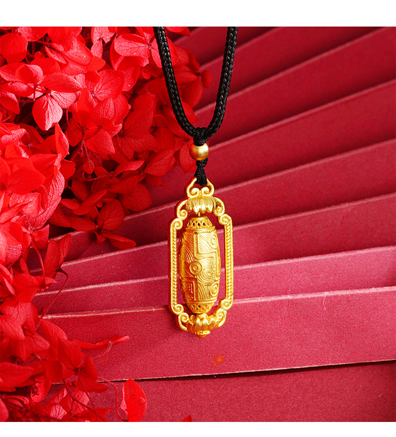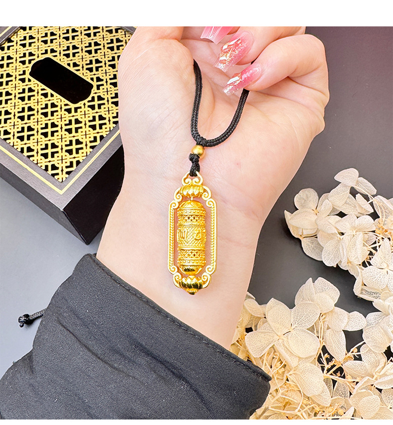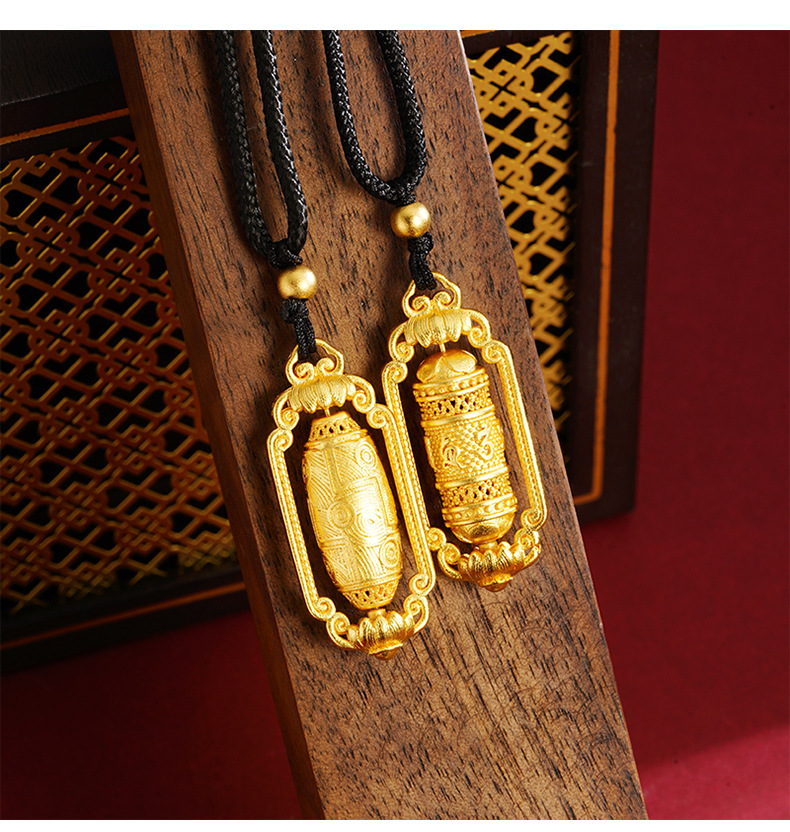 Patrimonio antiguo collar de oro de seis palabras mantra oración Tubo negro cuerda COLLAR COLGANTE todo fósforo estilo chino suministro directo de fábrica