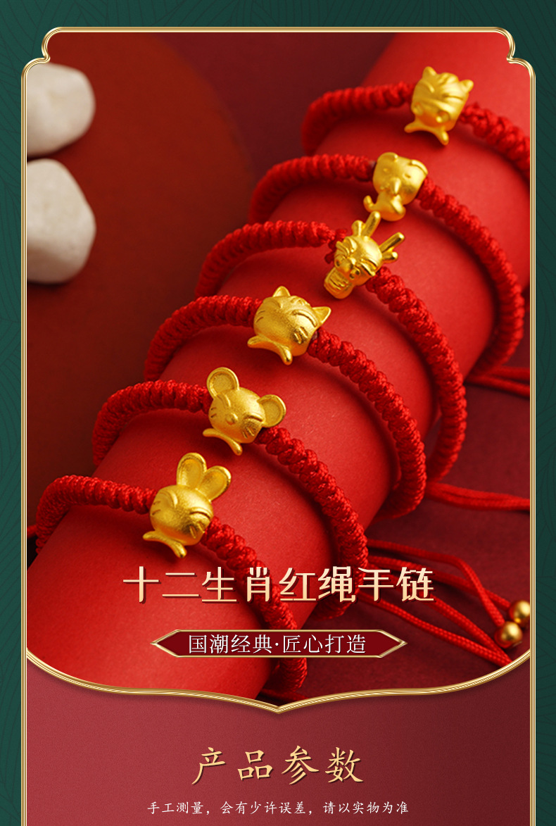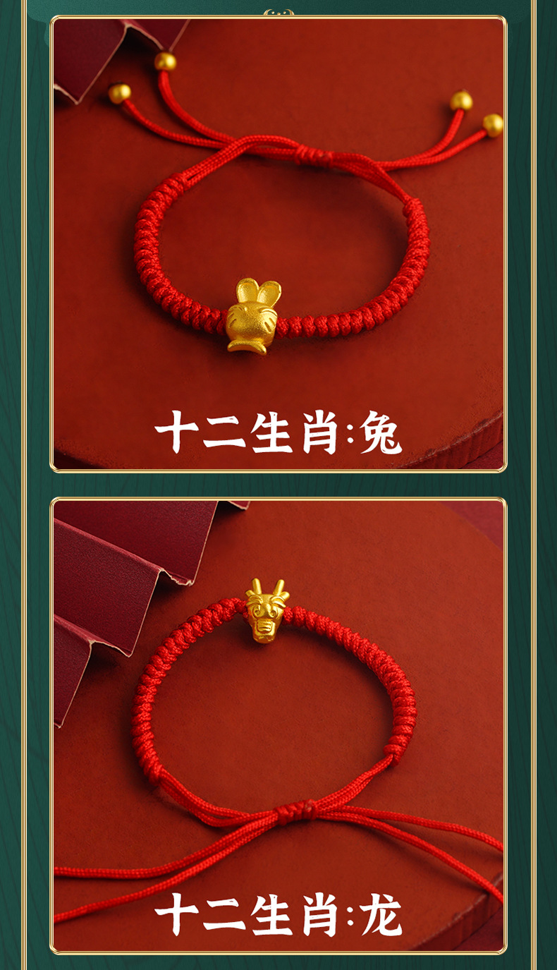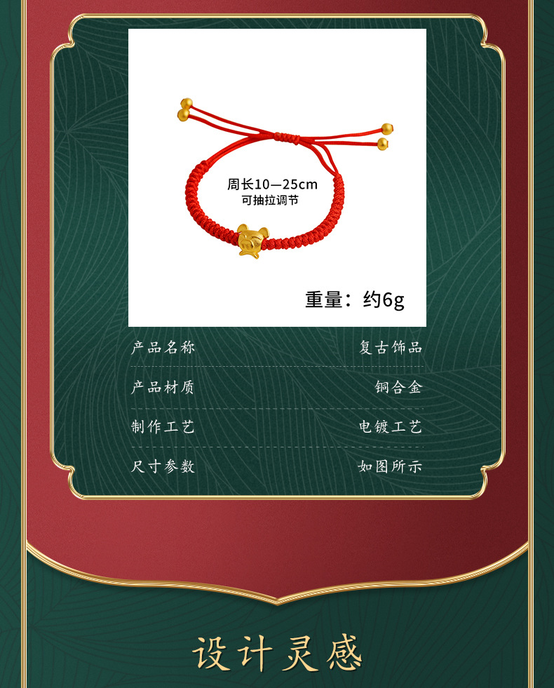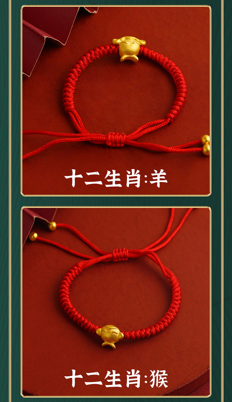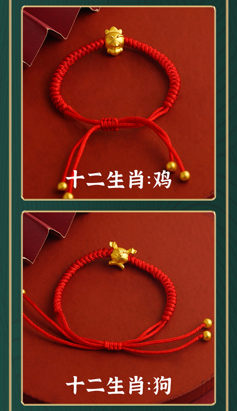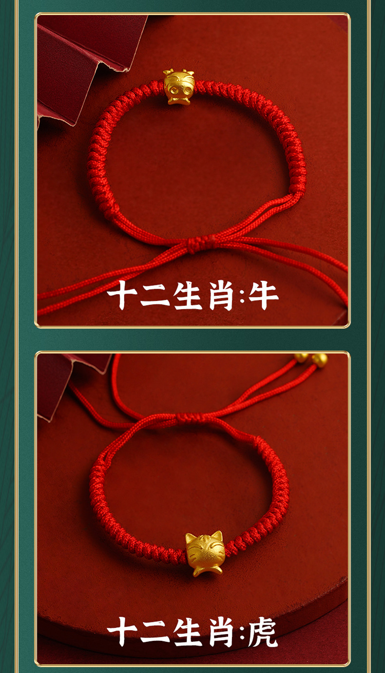 Pulsera de cuerda roja del zodiaco chino estilo nacional aleación de cobre hombres y mujeres cuerda de mano cuerda roja ajustable joyería retro moda nacional