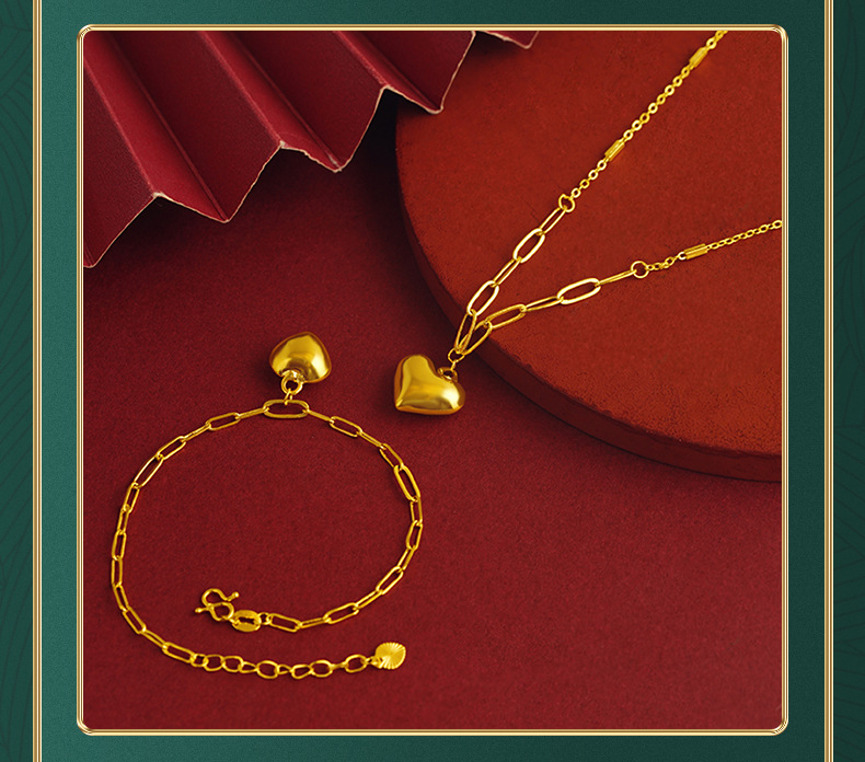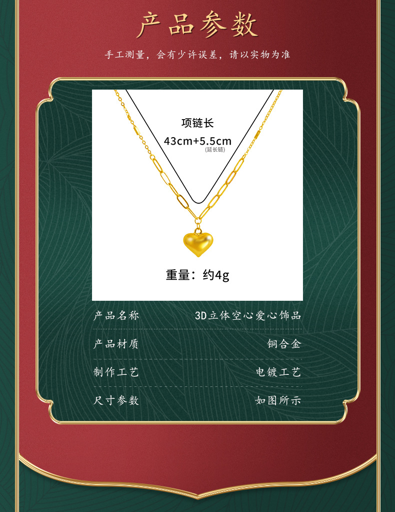 Simple 3D hueco en forma de corazón traje en forma de corazón pulsera elegante collar de las mujeres con aleación de cobre de moda del todo fósforo