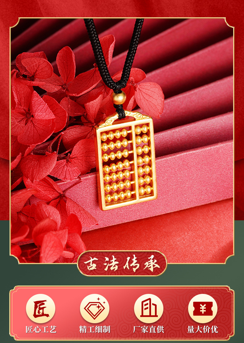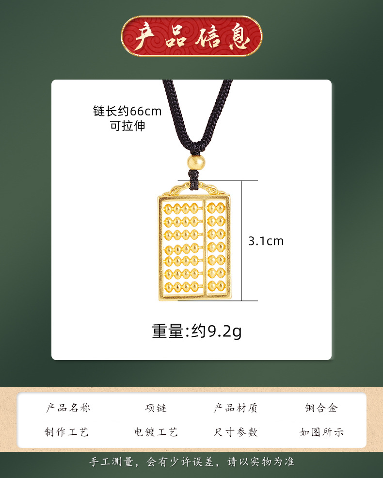 Antigua arena francesa oro Ábaco negro cuerda collar estilo chino retro todo fósforo Ruyi placa auspicioso transmisión en vivo productos calientes suministro directo de fábrica