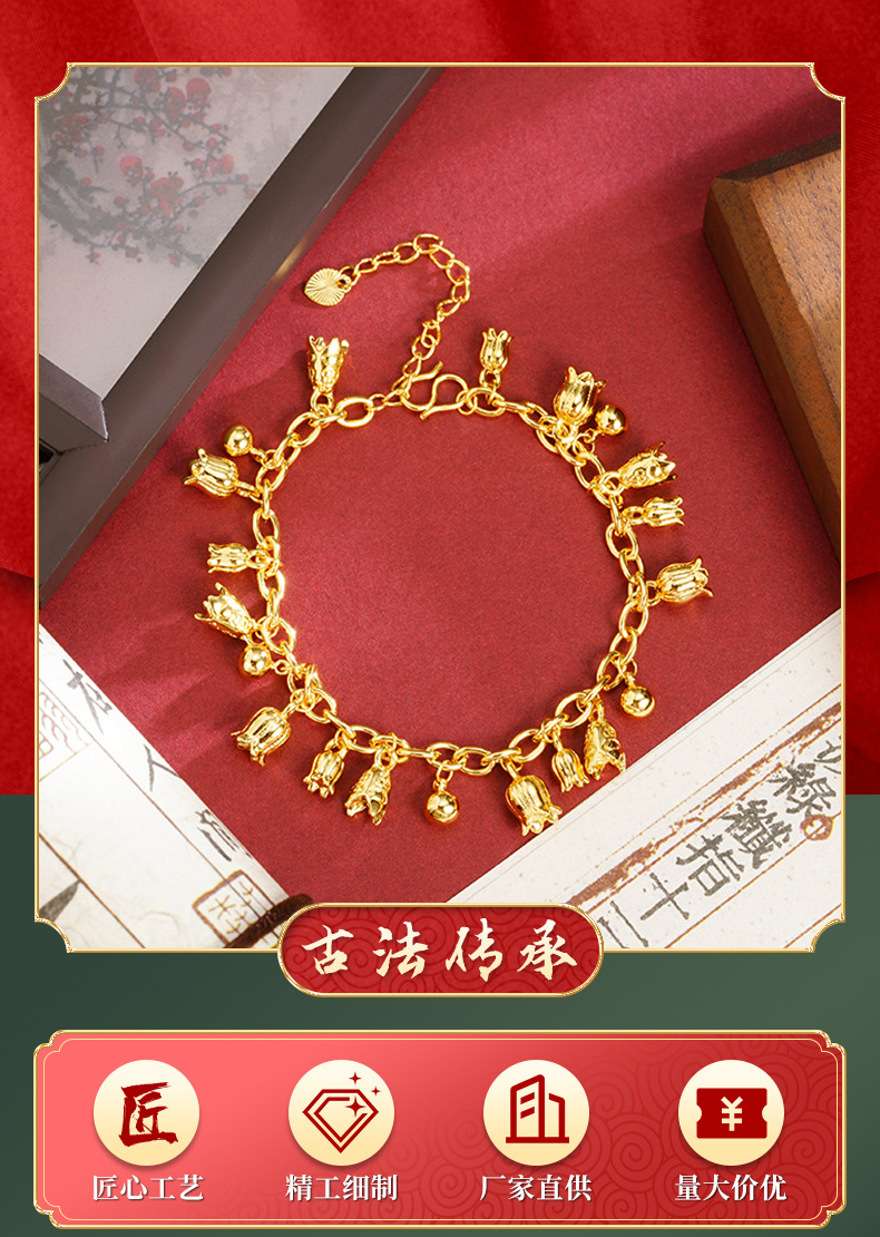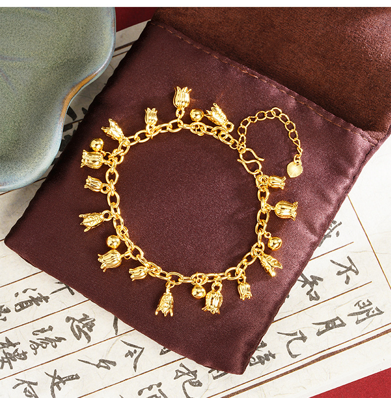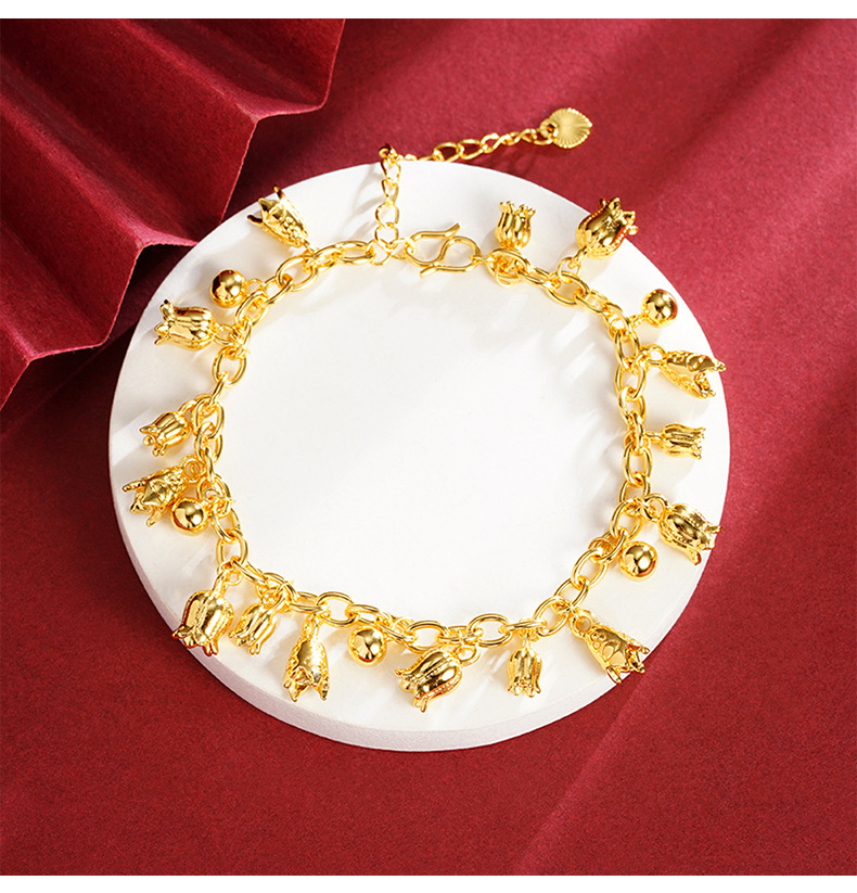 Pulsera de oro de Gufasha exagerada de alta sensación de campana orquídea frutífera pulsera multifacética lujosa ligera joyería no se desvanece