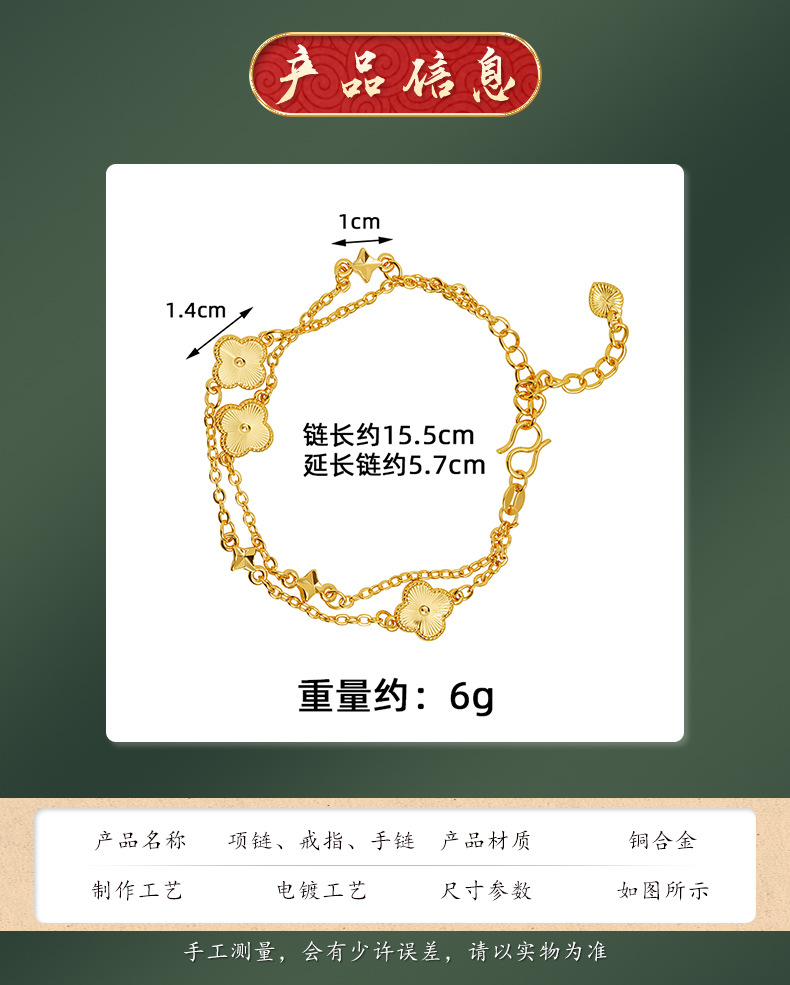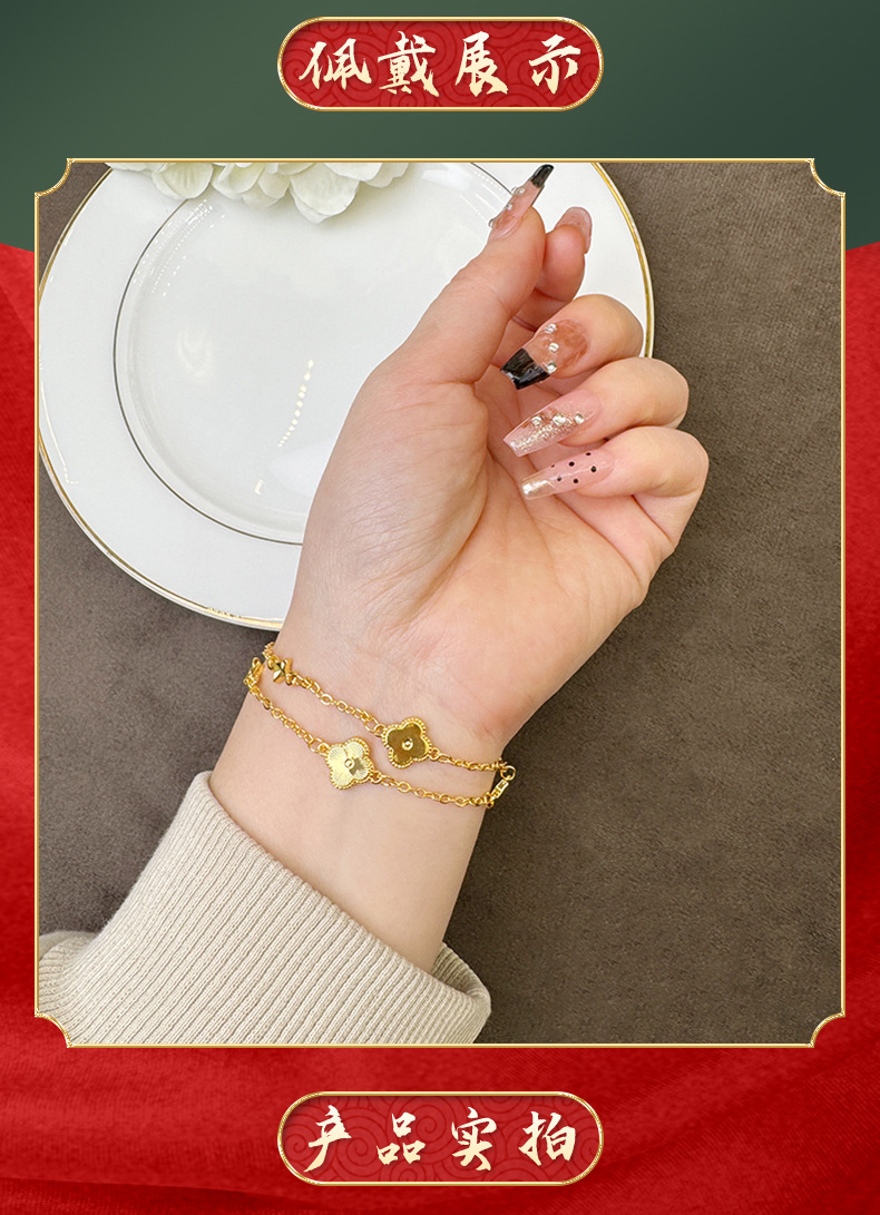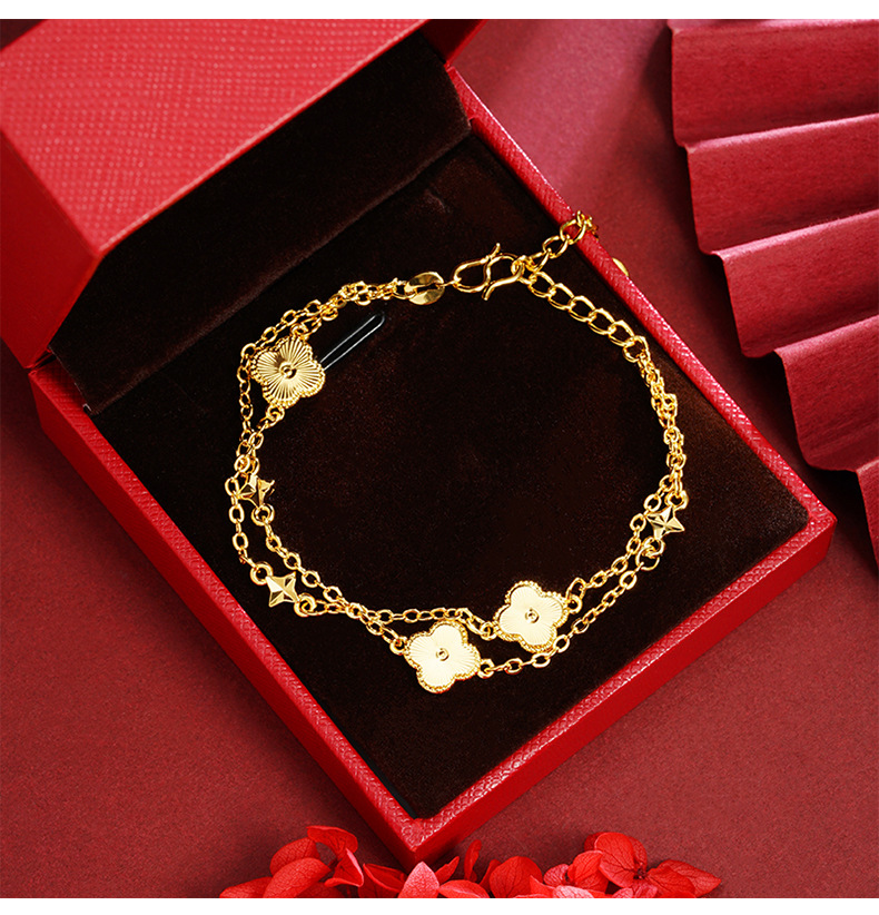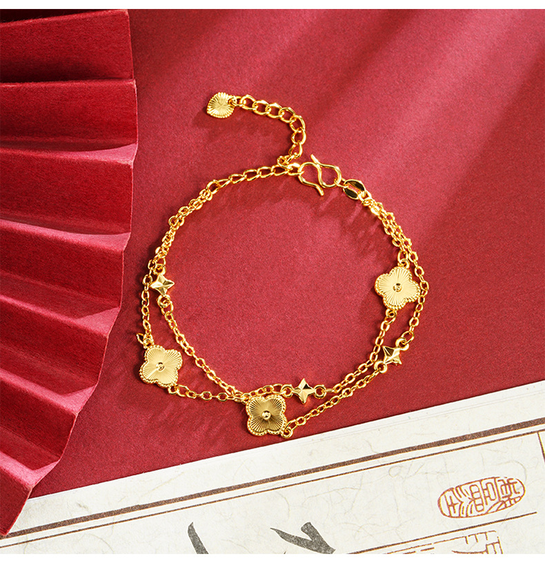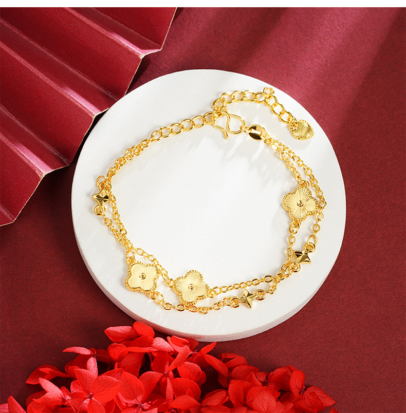 Nuevos productos de pulsera de oro de arena vietnamita corte viento láser de cuatro hojas de flores pulsera de moda mujer bronce chapado en oro joyas no se desvanecen