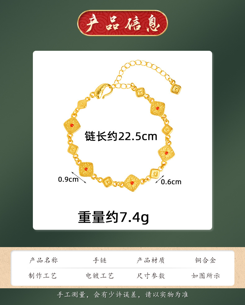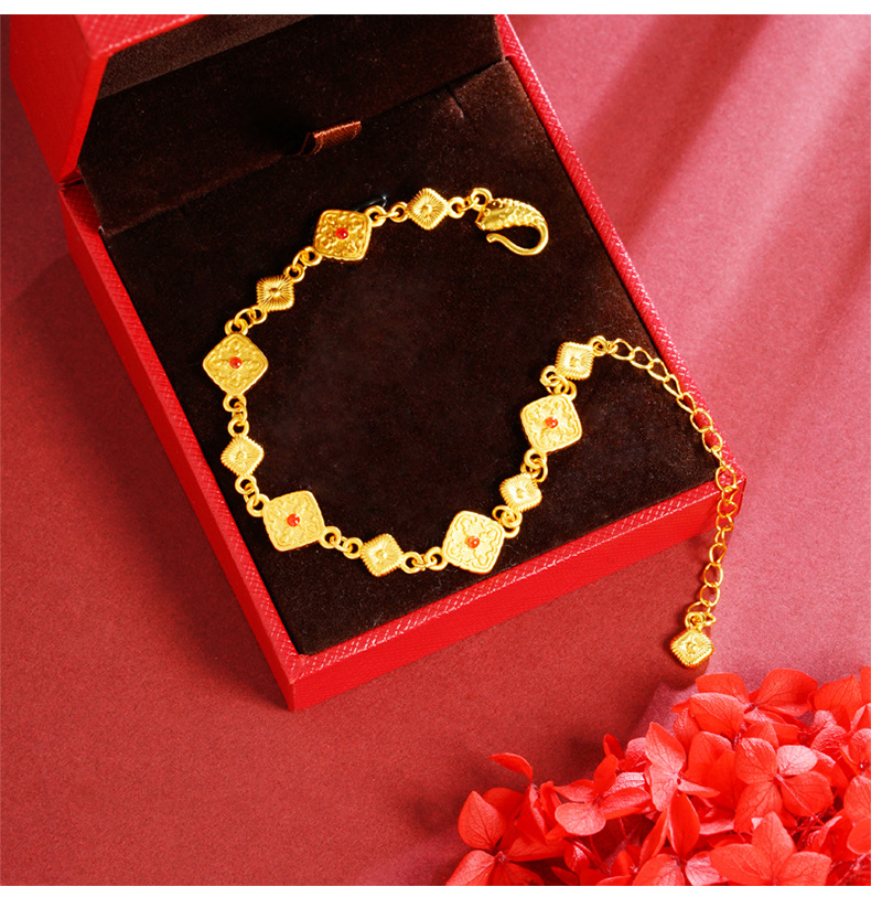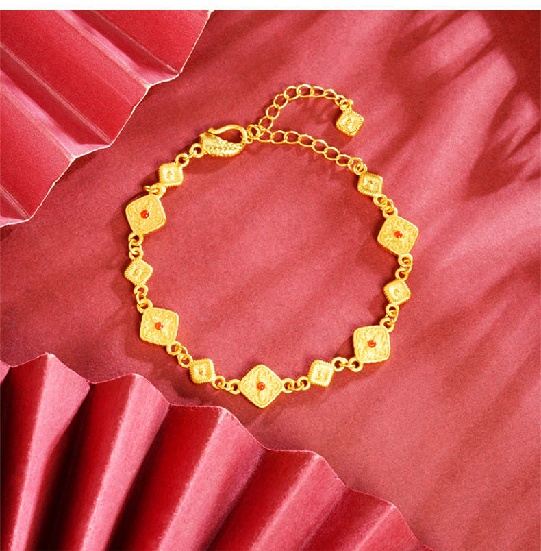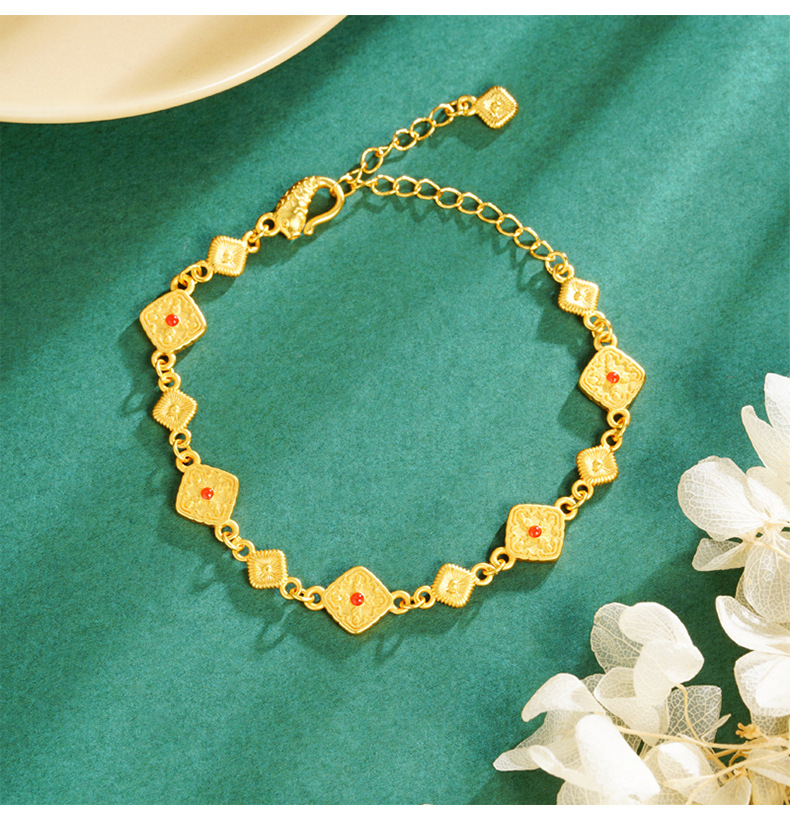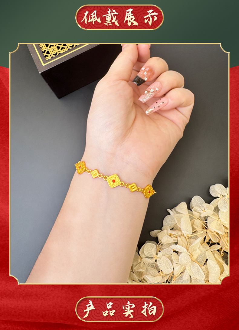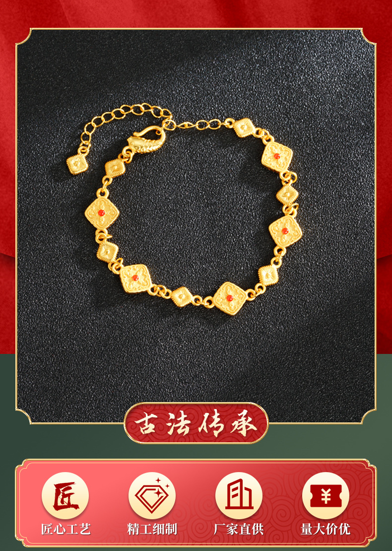 Pulsera cuadrada de oro retro incrustada de seda cepillada de Gufasha, moda, lujo ligero, fuente de joyas de alta calidad.
