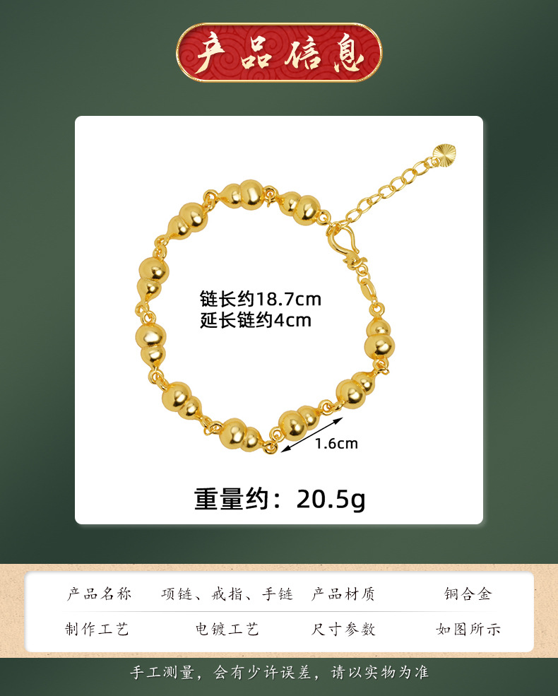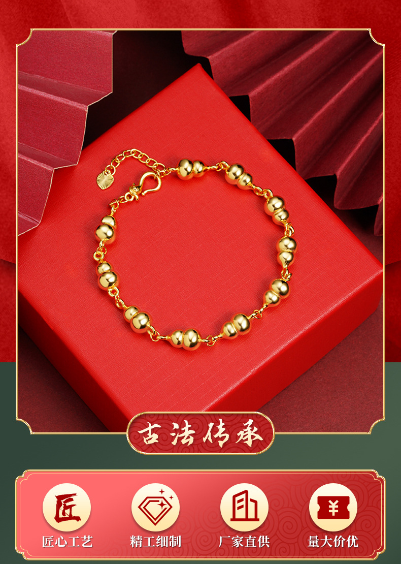 Nuevo gufa sha pulsera de oro nacional marea retro calabaza Fulu pulsera temperamento masculino y femenino bronce joyas chapadas en oro al por mayor