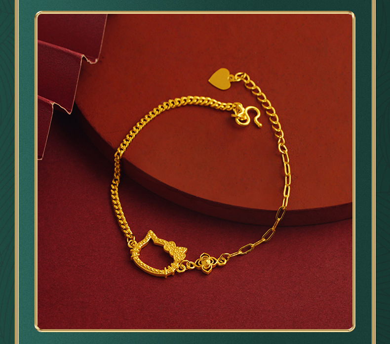 Nueva moda dulce lindo gatito gato pulsera personalidad imitación oro hueco gato pulsera para las mujeres al por mayor aleación de cobre