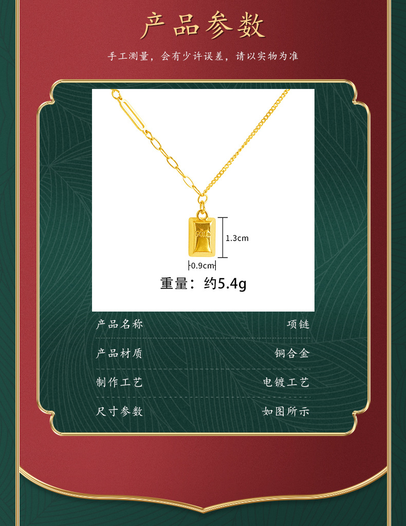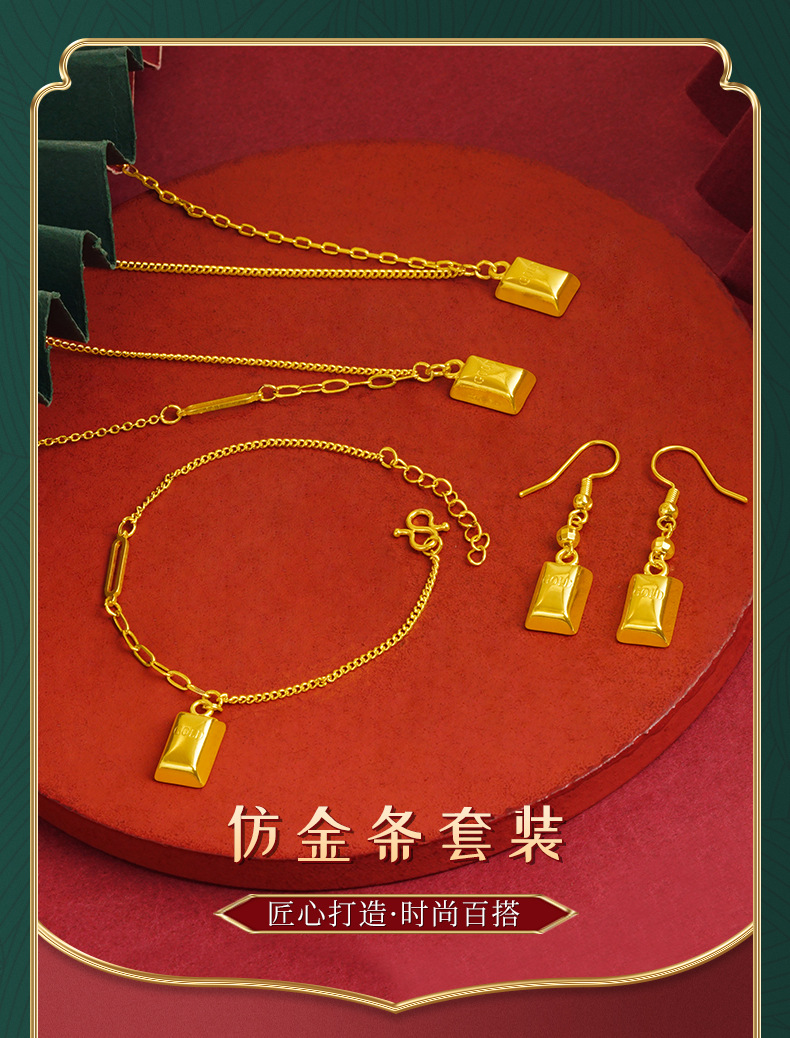 Moda nacional pequeño traje de barra de oro collar de joyería para hombres y mujeres pendientes de todo fósforo pulsera temperamento de moda fábrica al por mayor aleación de cobre