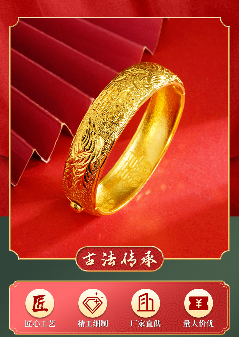 Dragón y Phoenix pulsera, 100 años de buena combinación, Oro de la arena de Vietnam tallada decoración, doble salario, joyería del regalo de boda, Yiwu venta al por mayor
