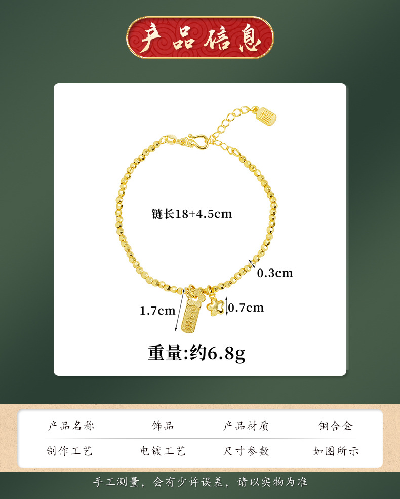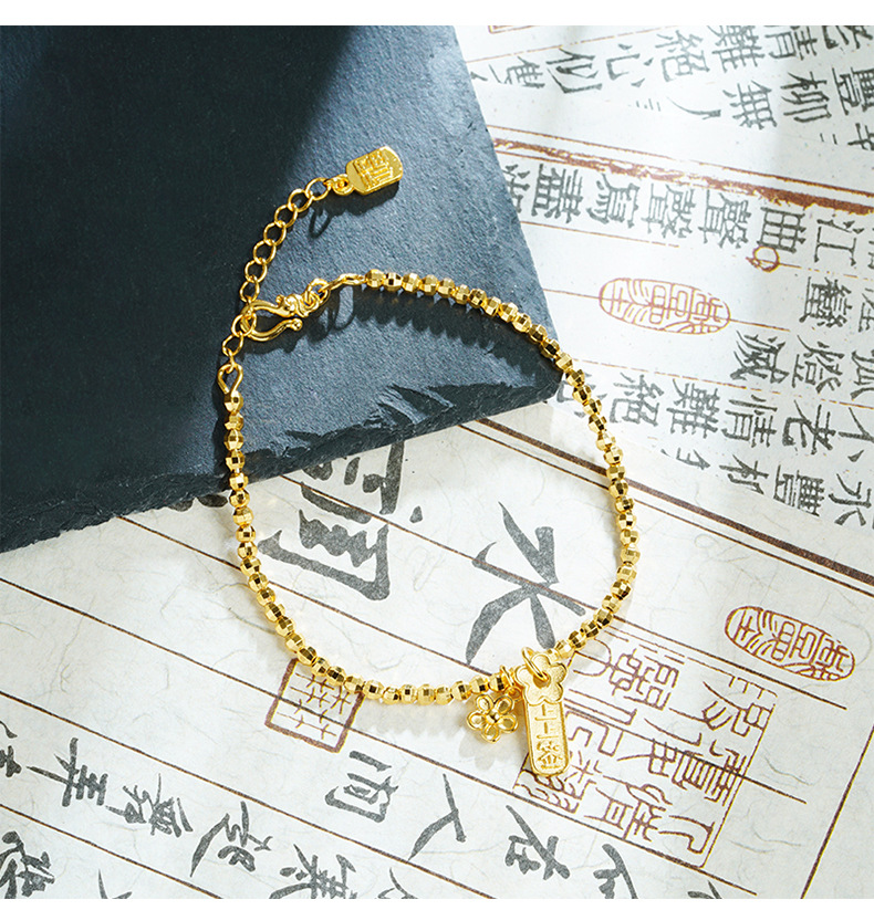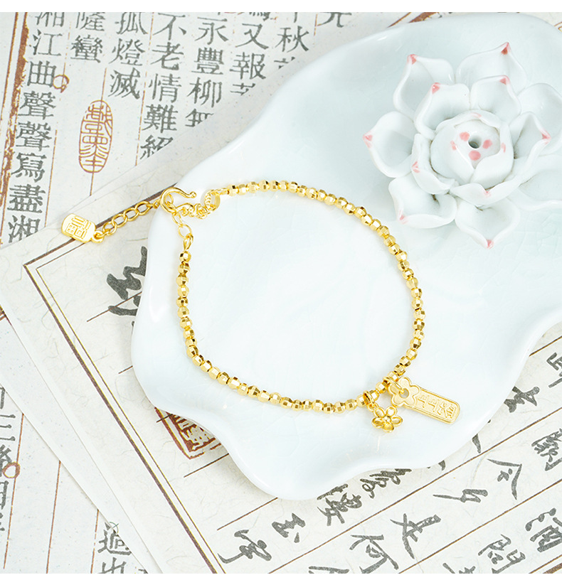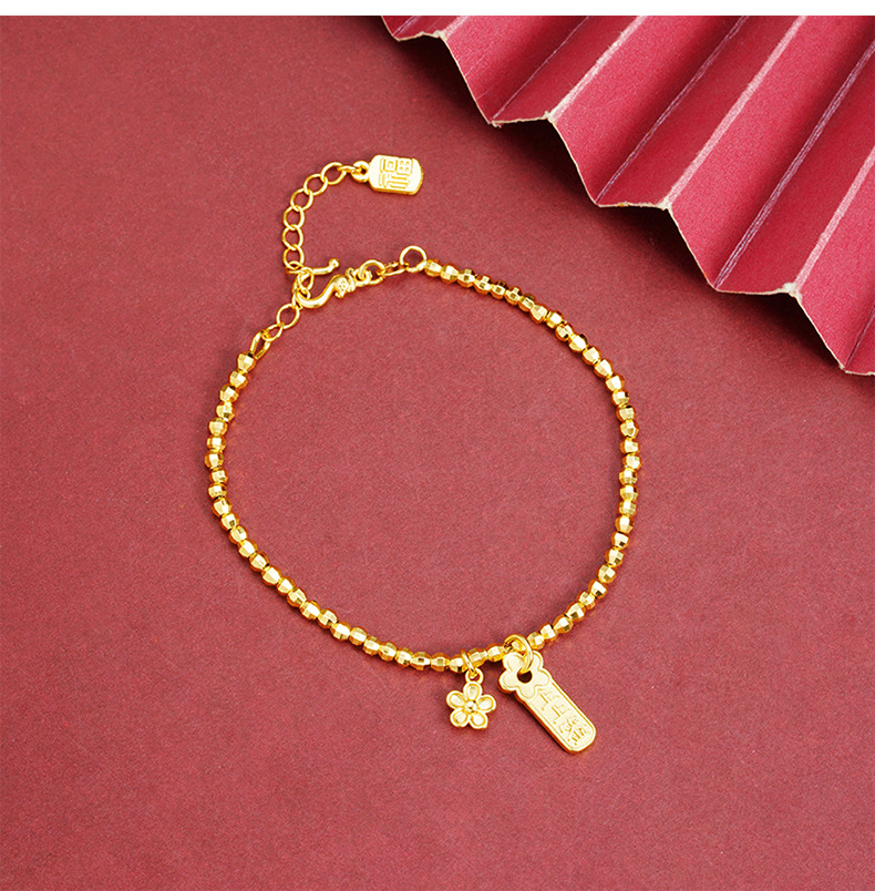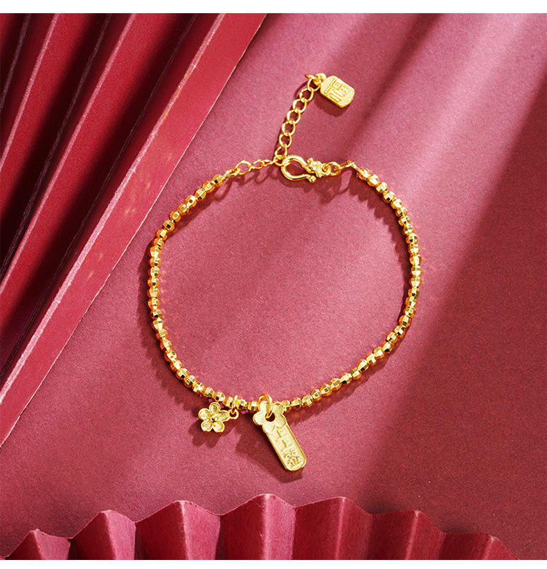 Brazalete de oro de arena vietnamita ligero lujoso en el viento firmado en flor de melocotón pulsera de plata de dos pulseras para mujeres que no se desvanecen joyas de mano
