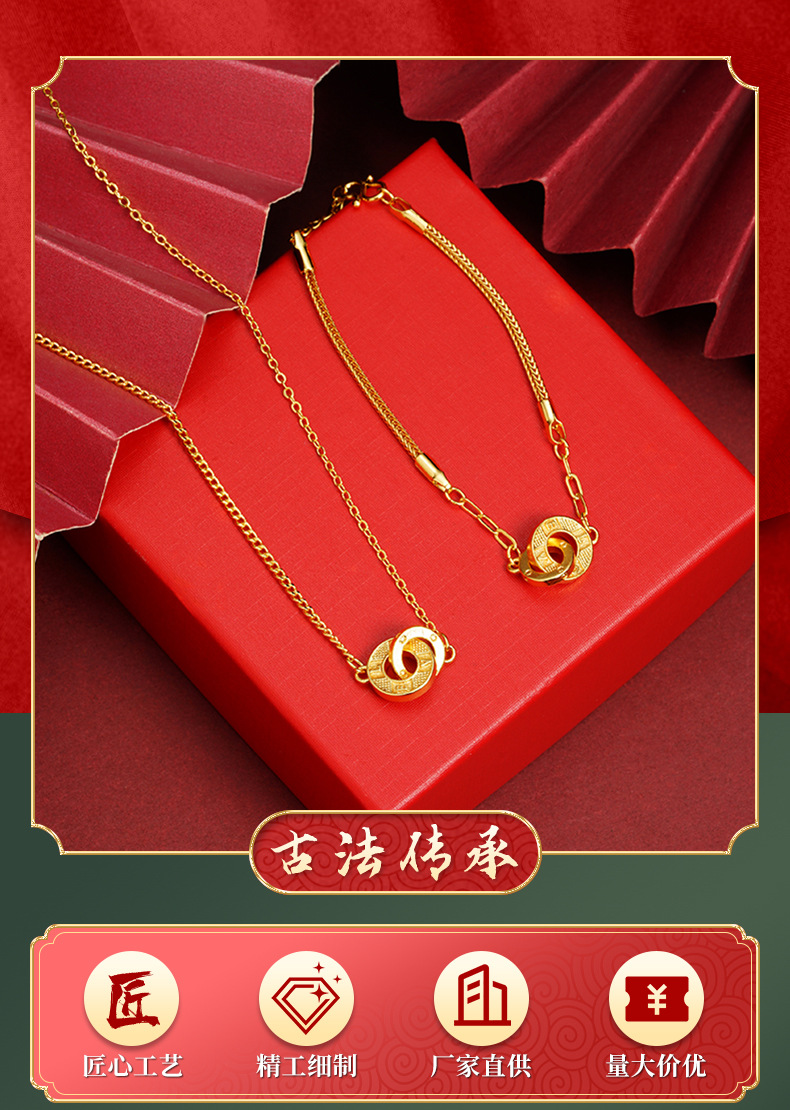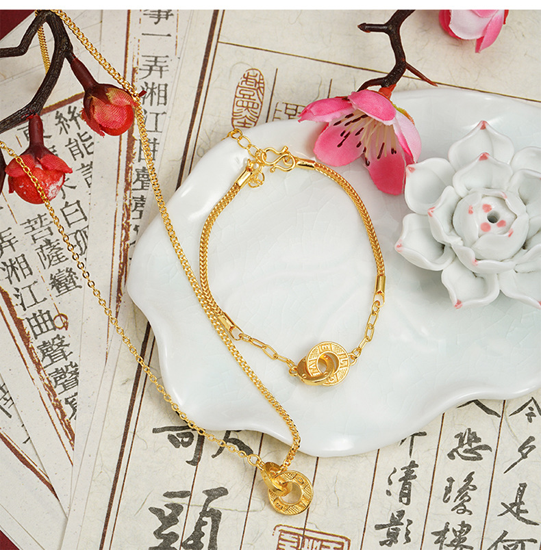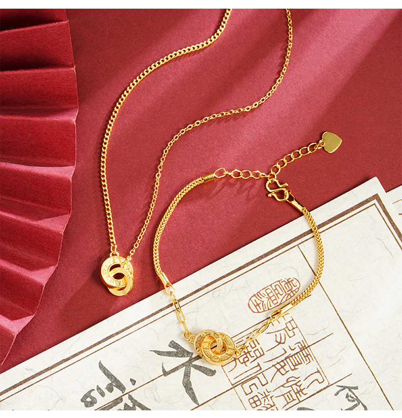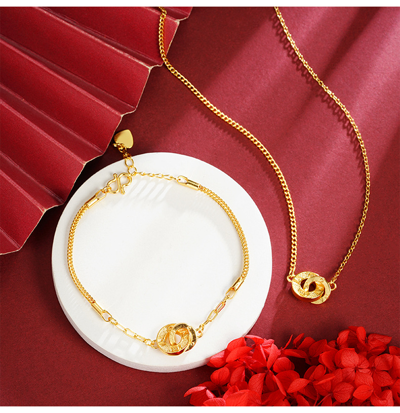 Nuevo collar de oro de arena vietnamita ligero lujoso anillo de viento entrelazado pulsera femenina de alta calidad no se desvanece joyas