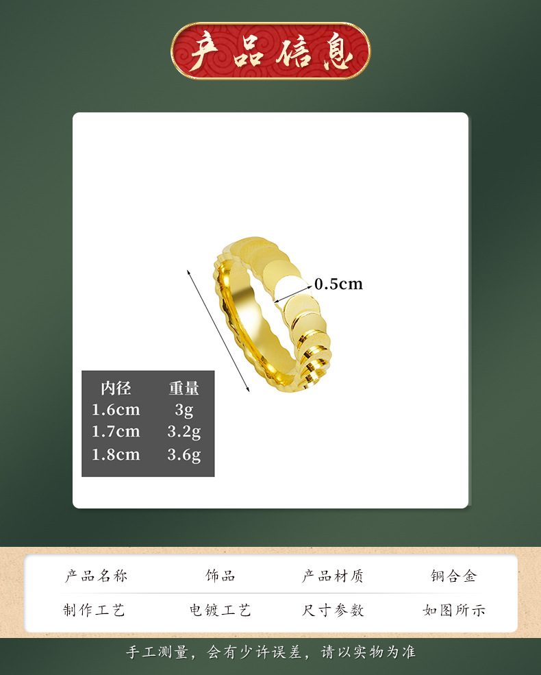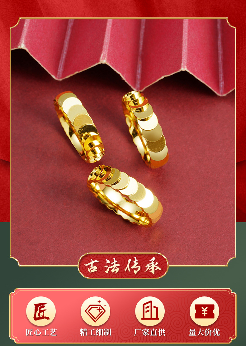 Nuevo anillo de oro de arena vietnamita, anillo de escamas de pez, anillo de pareja, joyería al por mayor, cobre chapado en oro