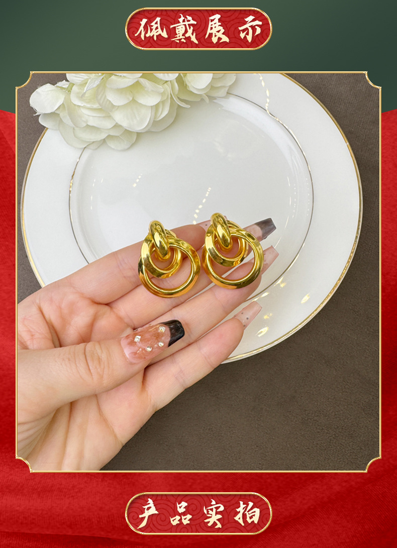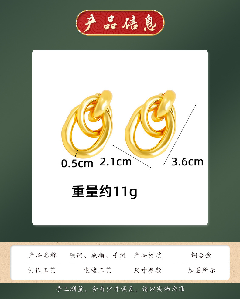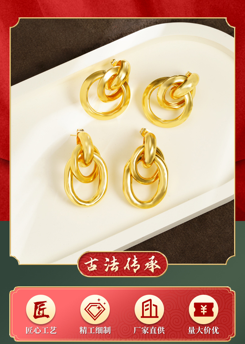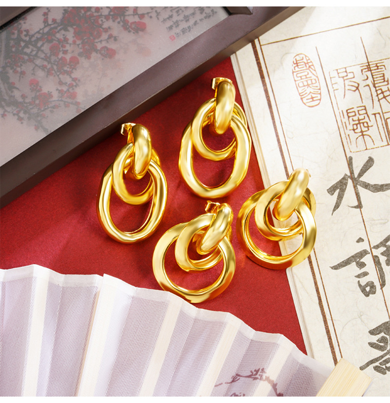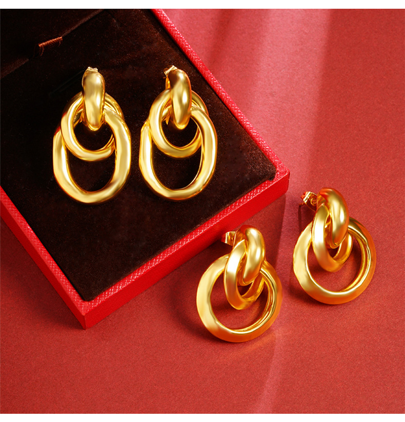 Transfronteriza aretes de oro de Vietnam lujoso ligero estilo tridimensional aretes de geometría personales diseño femenino no se desvanecerá joyas de orejas