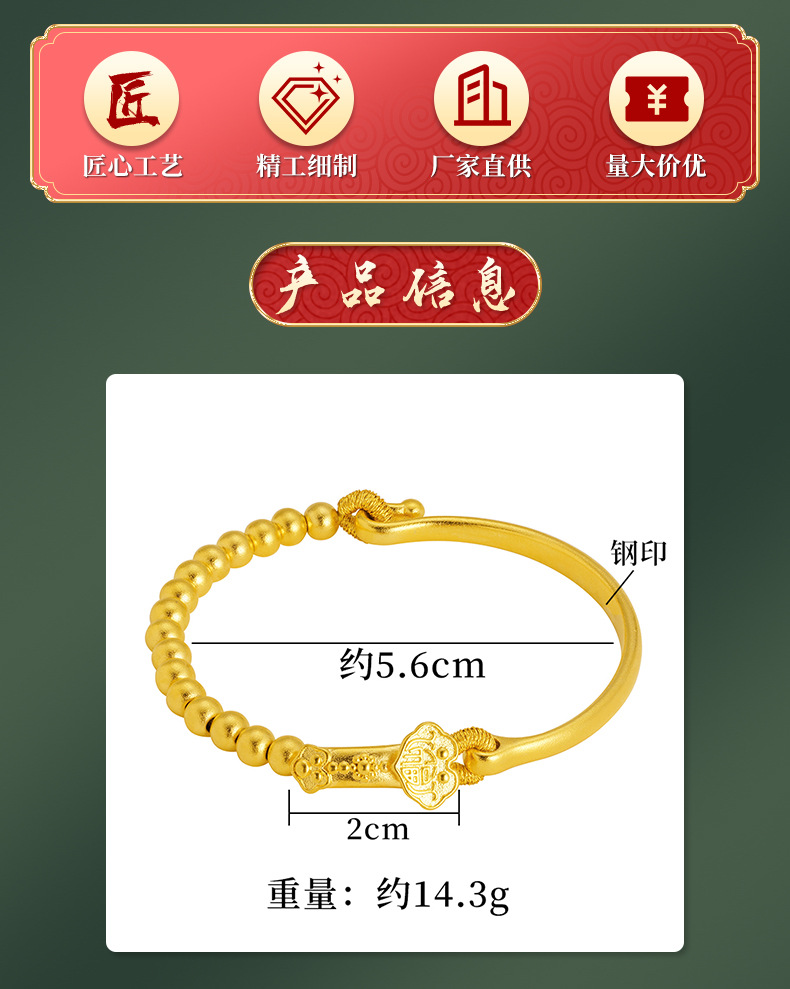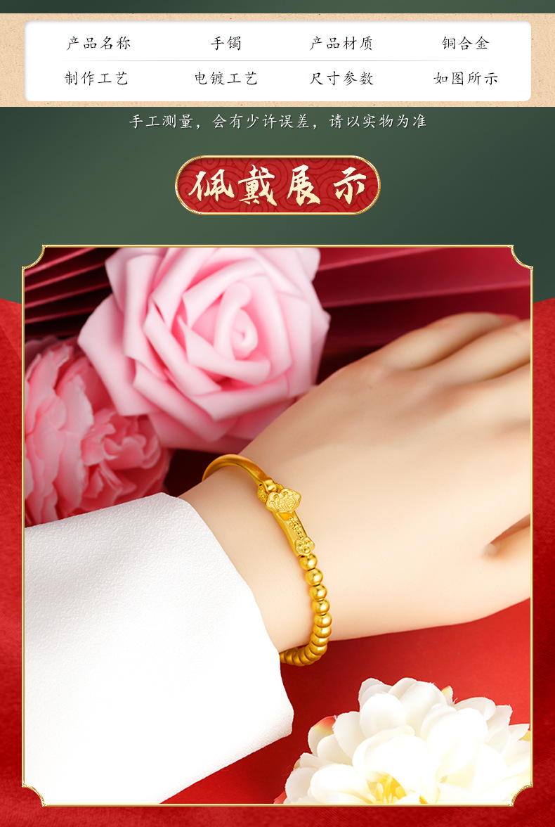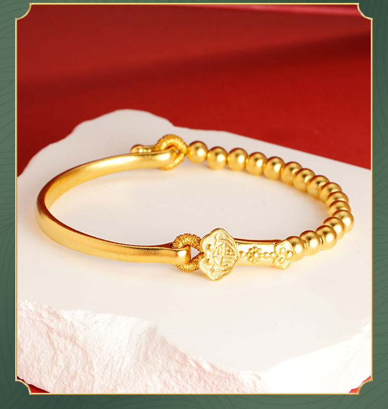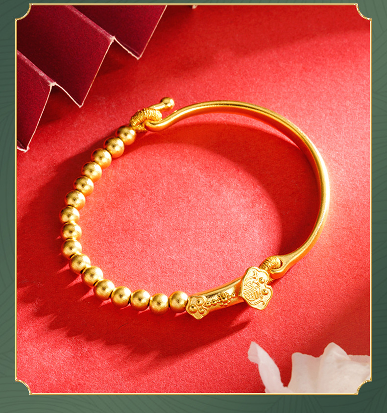 Aleación de cobre Ruyi con cuentas media pulsera antigua joyería de estilo francés pulsera de oro arena femenina no se desvanece durante mucho tiempo suministro directo de fábrica a juego