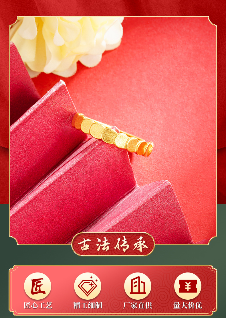Anillo de panal boca abierta Vietnam arena oro estilo fresco de las mujeres todo-fósforo joyería de moda Pequeño Libro Rojo mismo estilo fábrica al por mayor