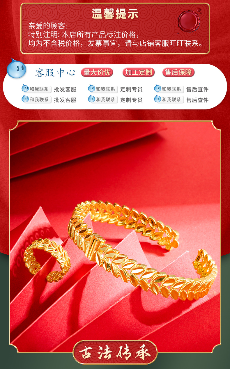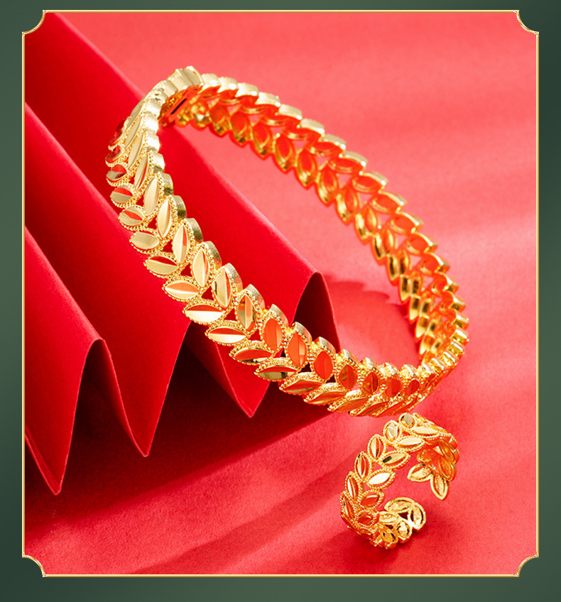 Vietnam anillo de oro de las mujeres de largo plazo no se desvanece gran trigo oreja hebilla pulsera de las mujeres hojas de aleación de cobre imitación pulsera de oro