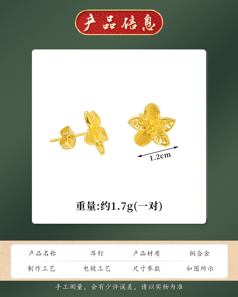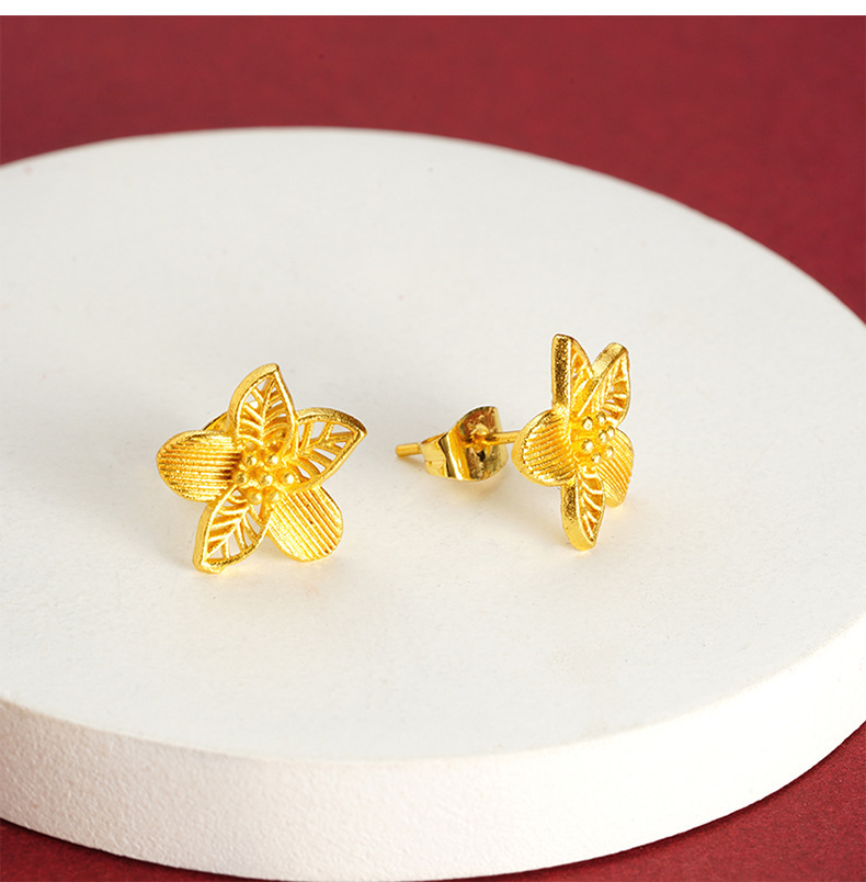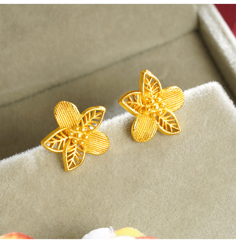 Antiguo estilo vietnamita arenas flores pernos de orejas de alta calidad para mujeres no se desvanecen cuatro hojas cinco flores joyas de orejas de aleación de latón