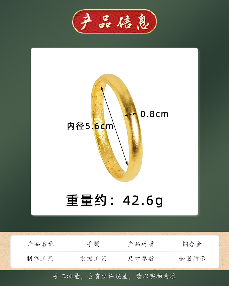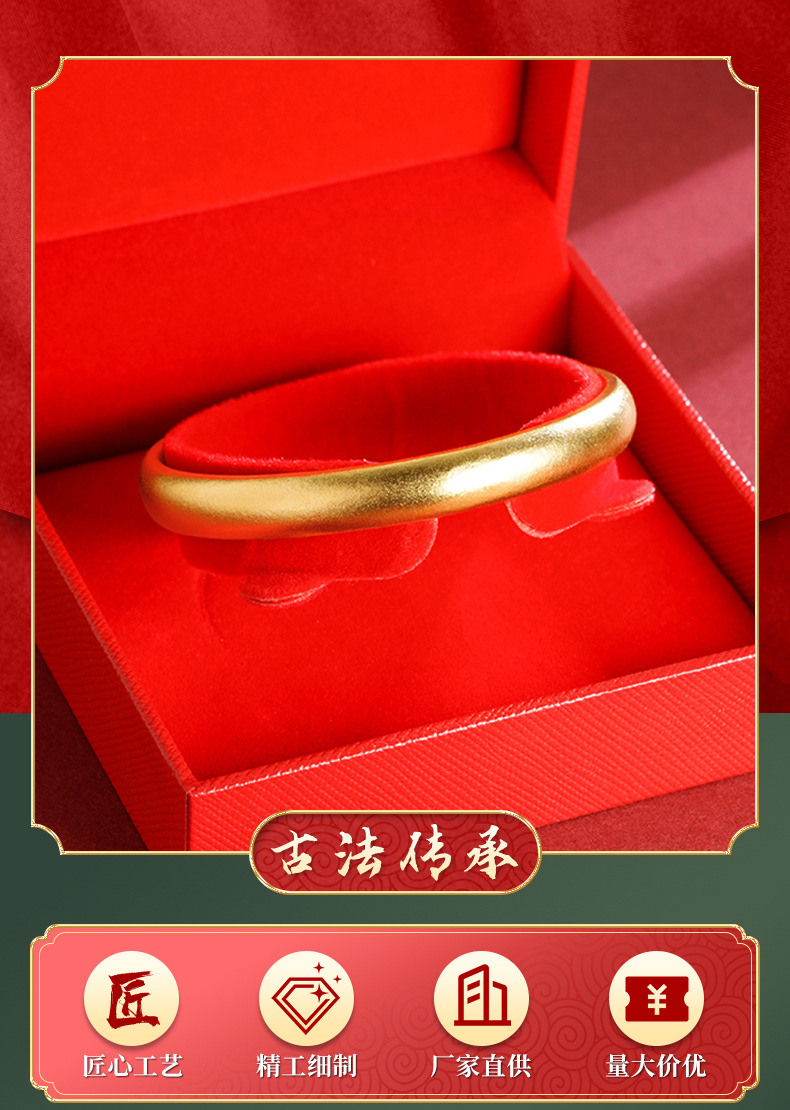 Antiguo oro vietnamita baifu esmerilado pulsera mate Fu caracter herencia de aleación de cobre mujer larga pulsera no desvanecerse al por mayor