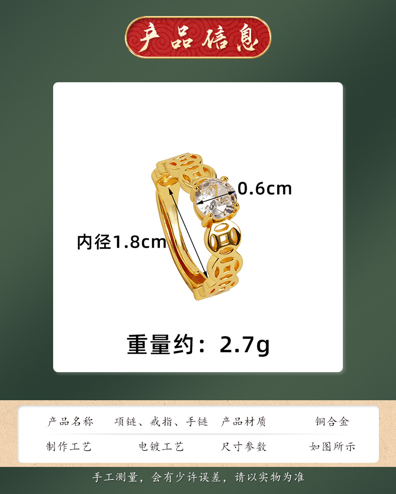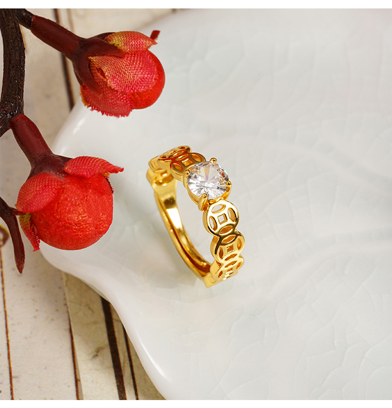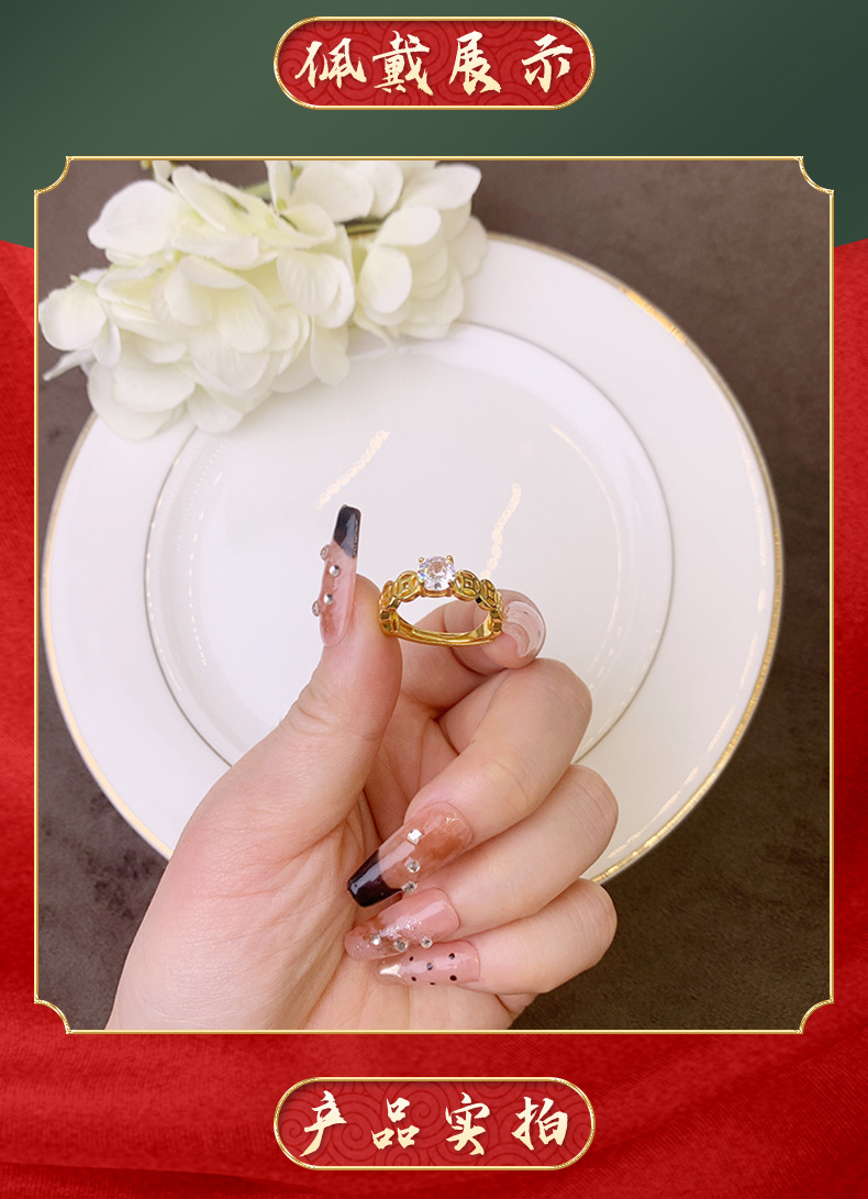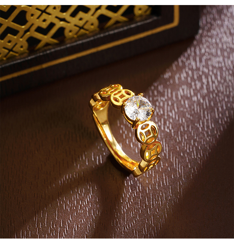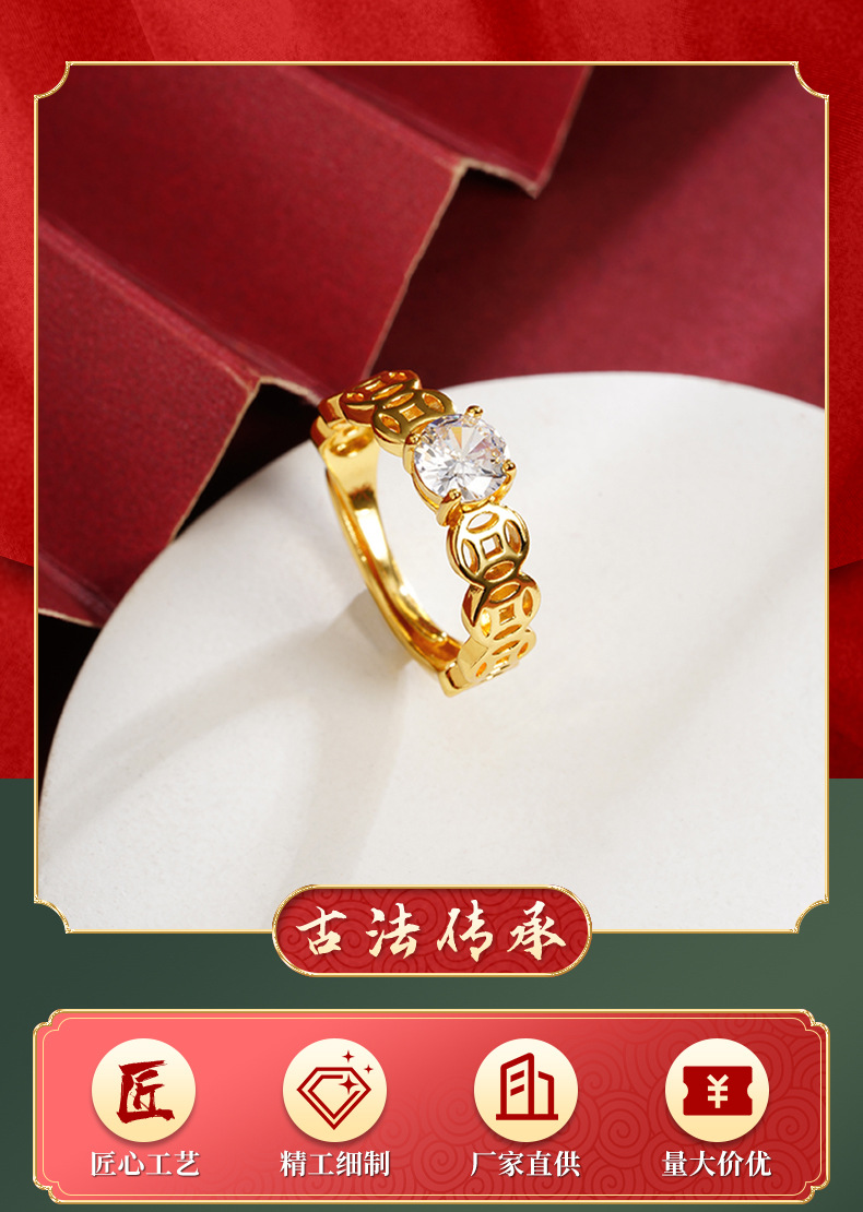 Guochao antiguo anillo de oro de arena vietnamita monedas de bronce retro hueco anillo de pulso de alquiler mujer lujo ligero no se desvanece joyas de mano
