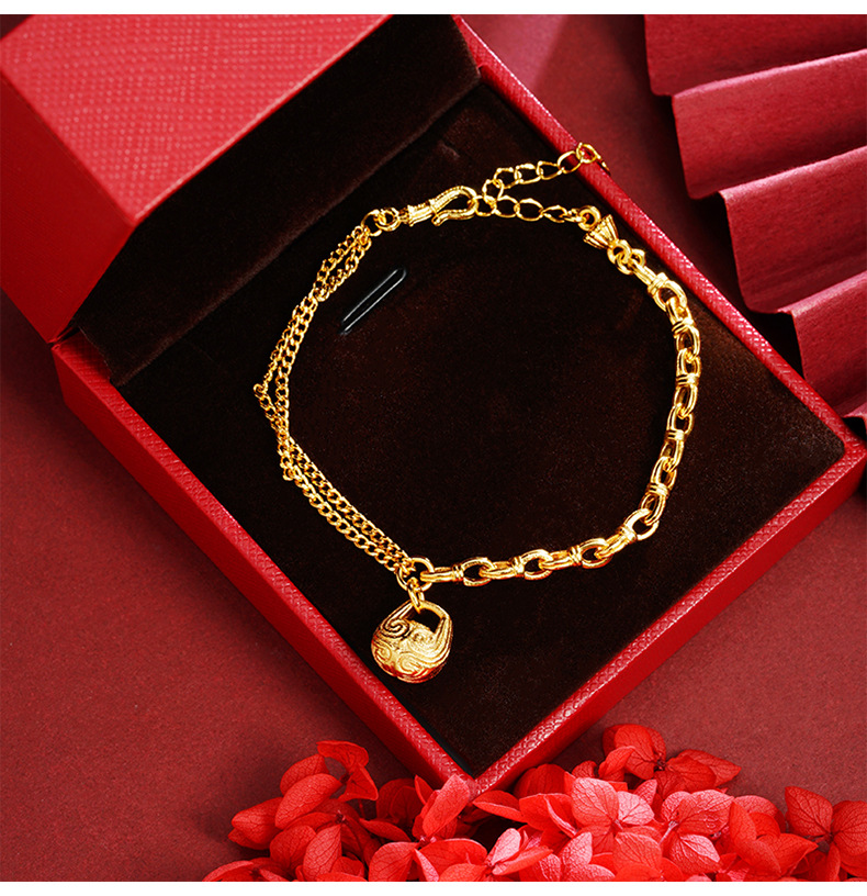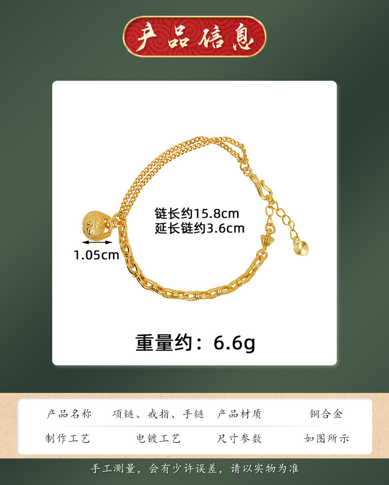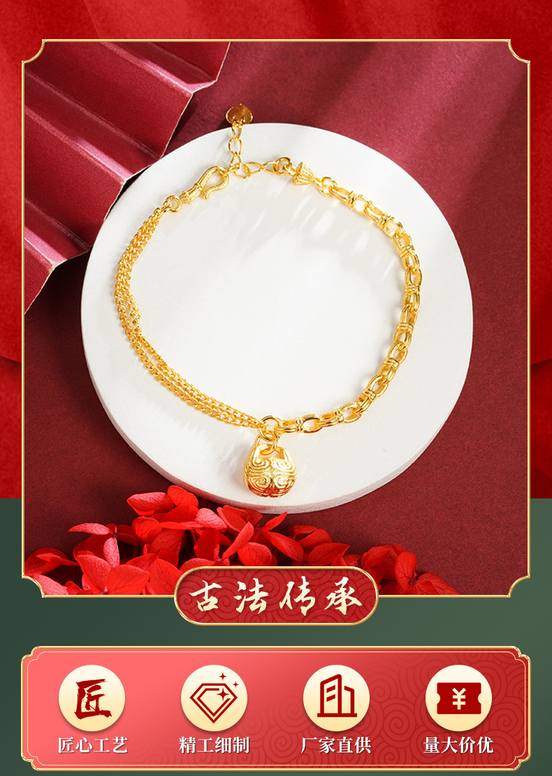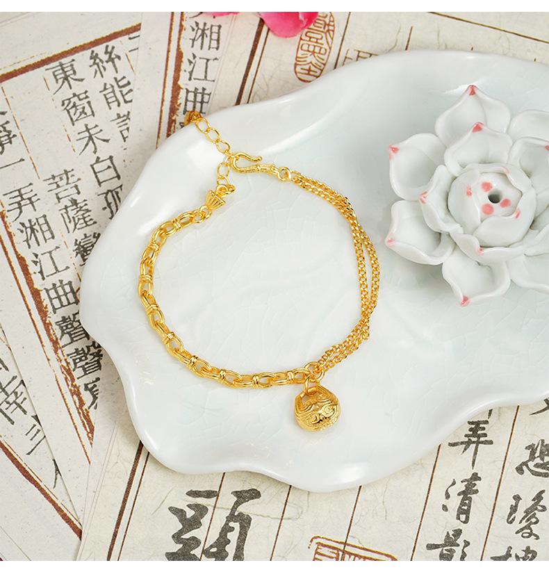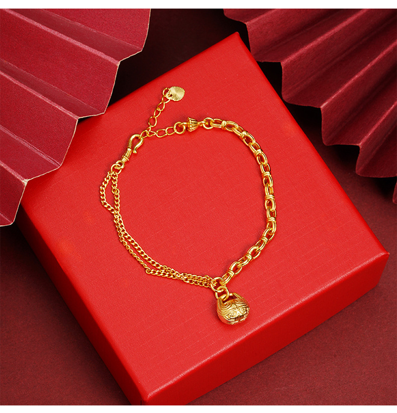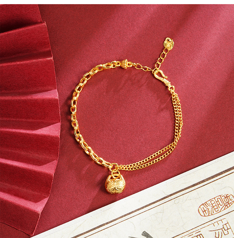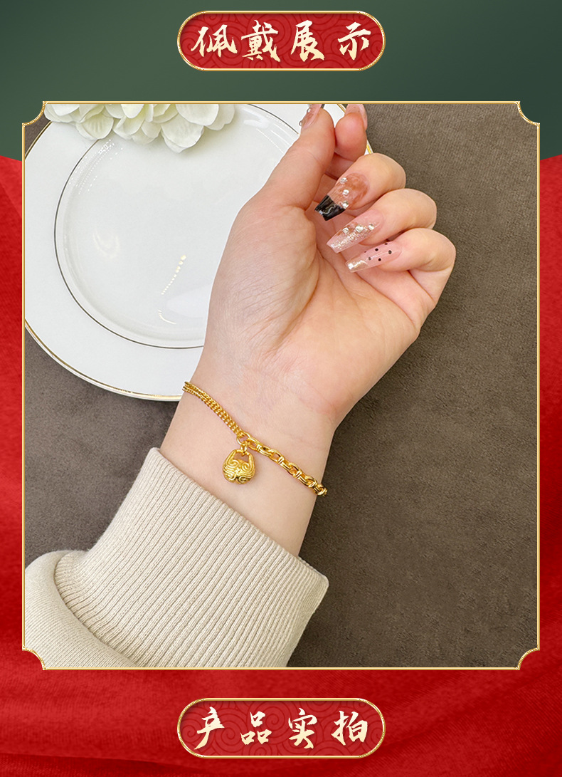 Guochao Guofa sha pulsera de oro guochao cara de pez de madera Ping An Fu pattern pulsera femenina joyería de estilo de corte al por mayor