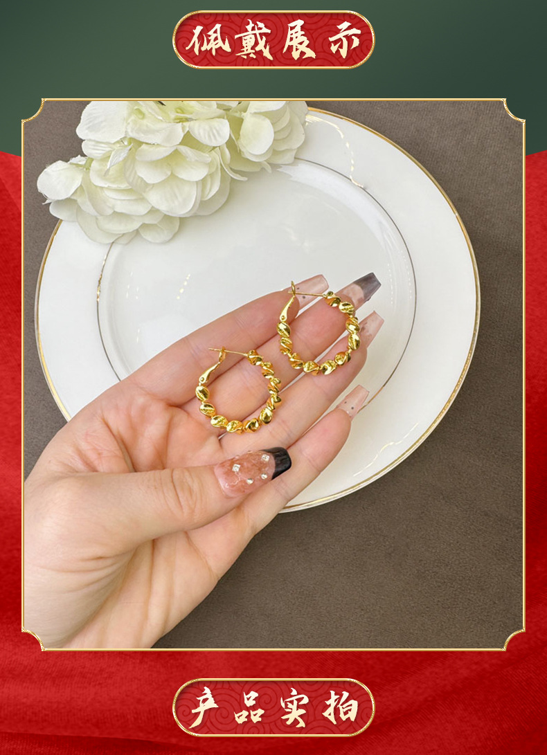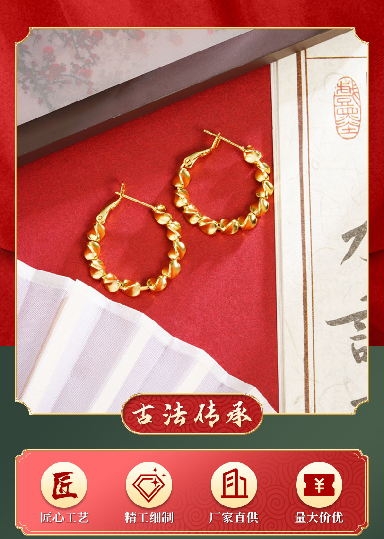 Nuevos aretes de oro de estilo chino antiguo estilo coreano textura ligera aretes de lujo diseño de personalidad femenina no se desvanecerá joyas de orejas